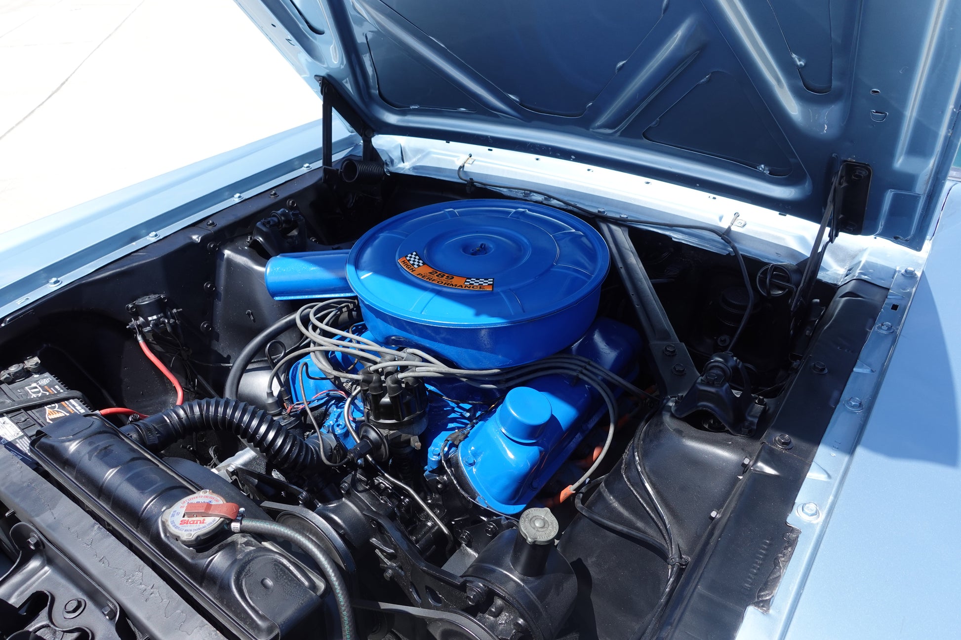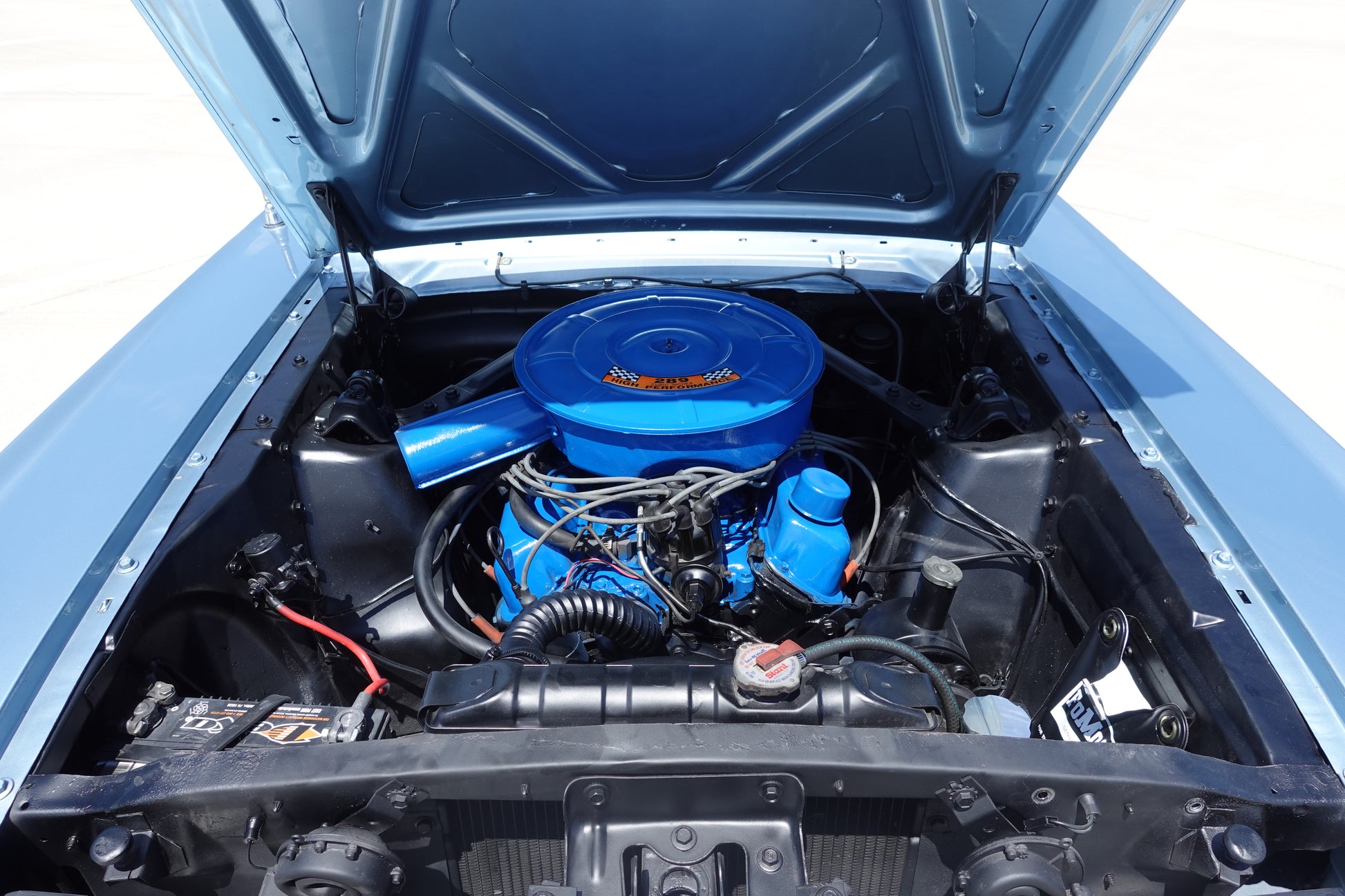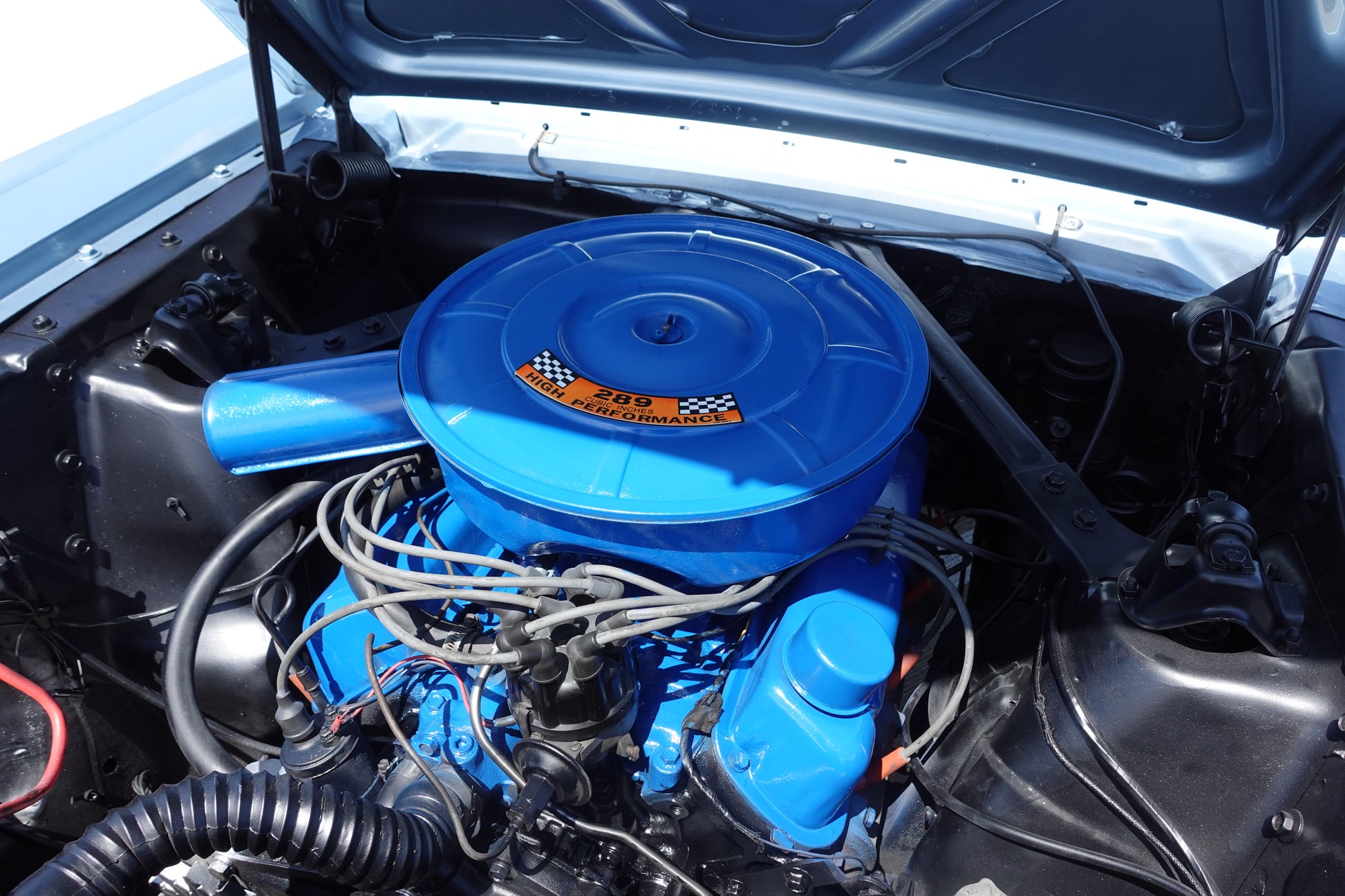 THE 289 8 CYL ENGINE RETAINS THE ORIGINAL AIR CLEANER AND VALVE COVERS