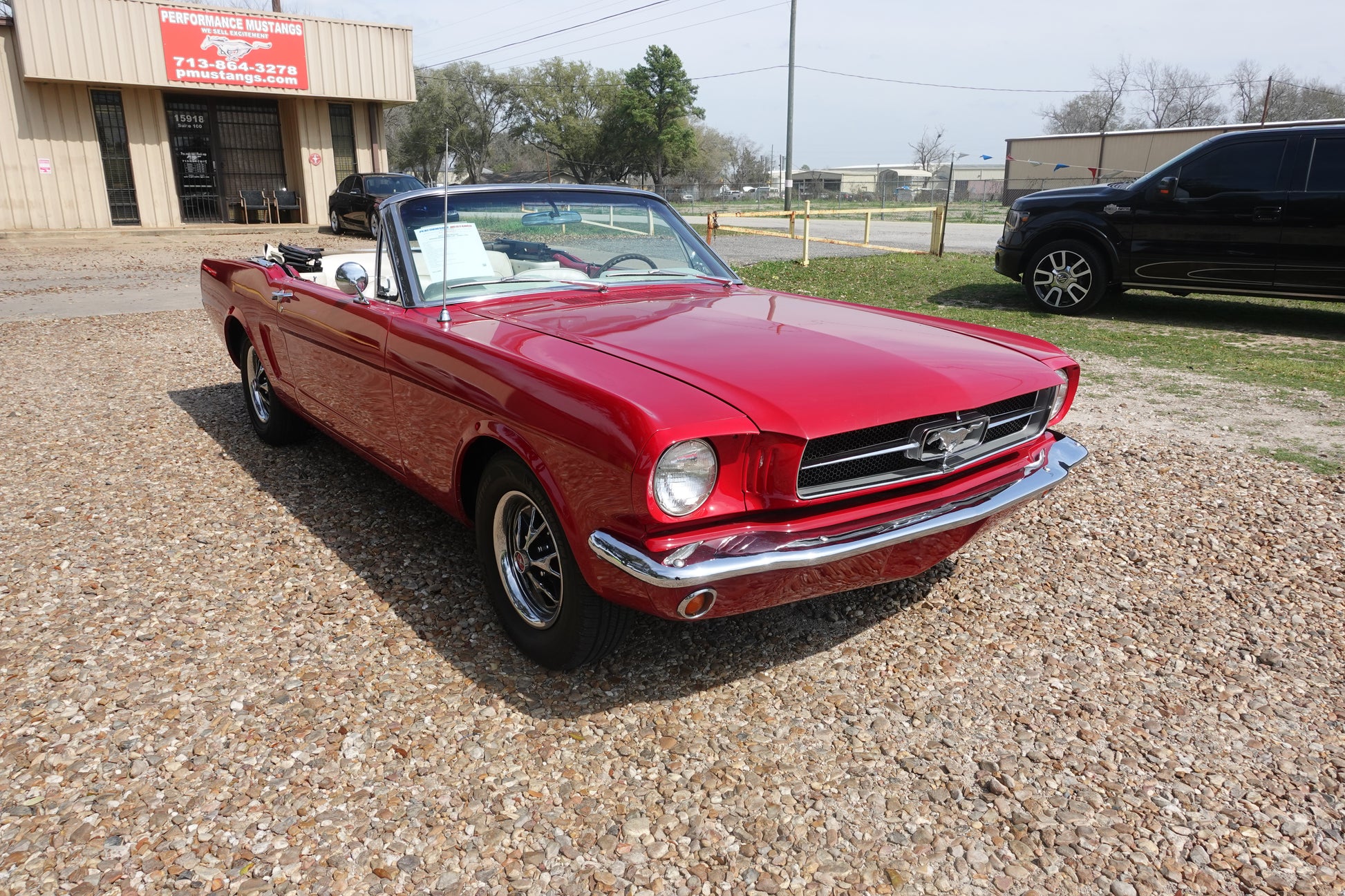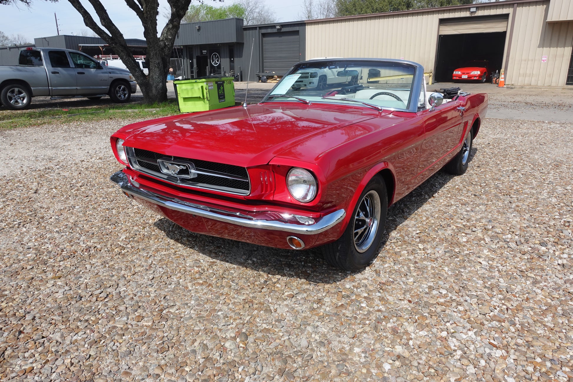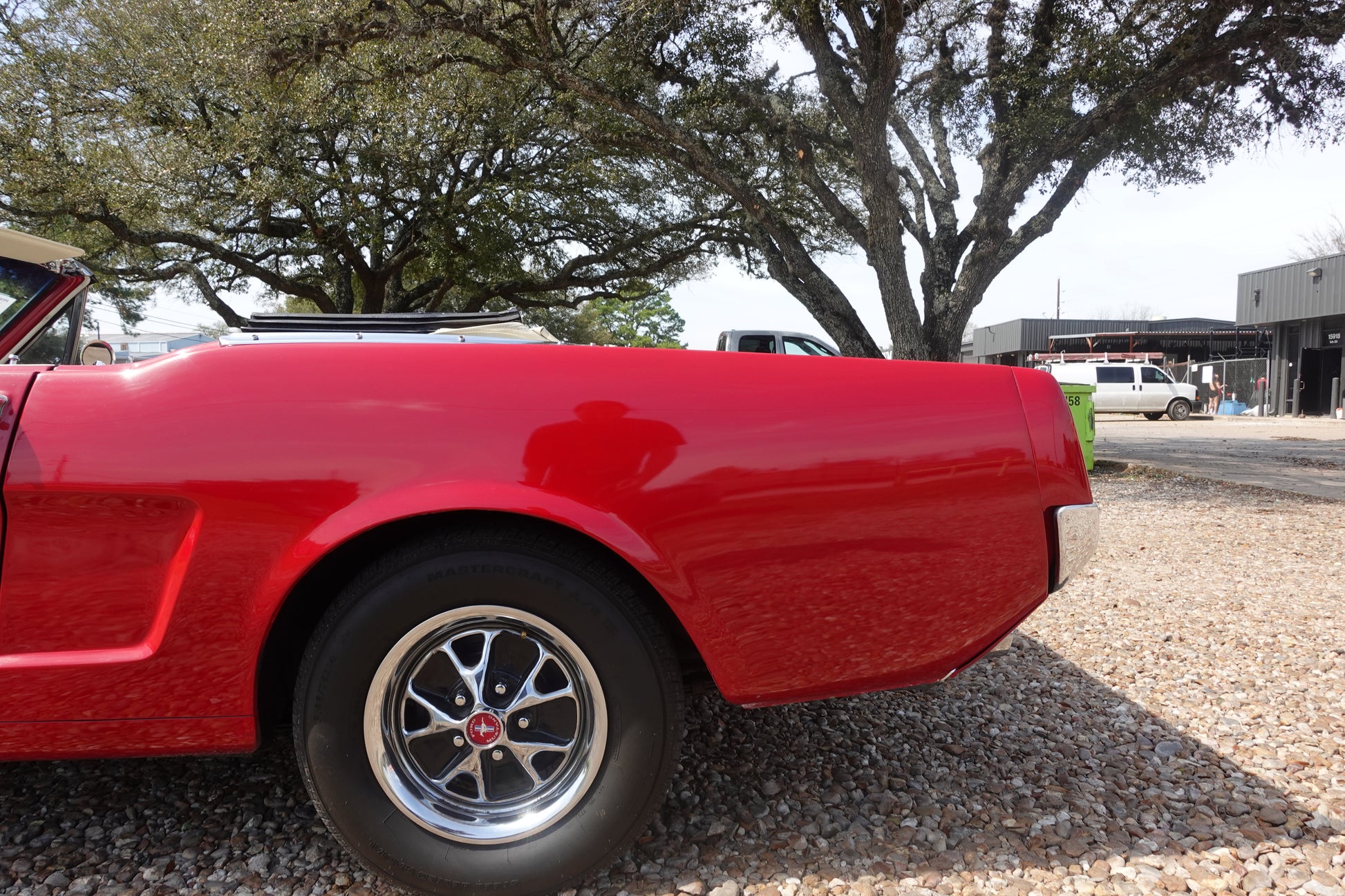 FRESHLY PAINTED RANGOON RED MUSTANG CONVERTIBLE WITH WHITE TOP POWER TOP