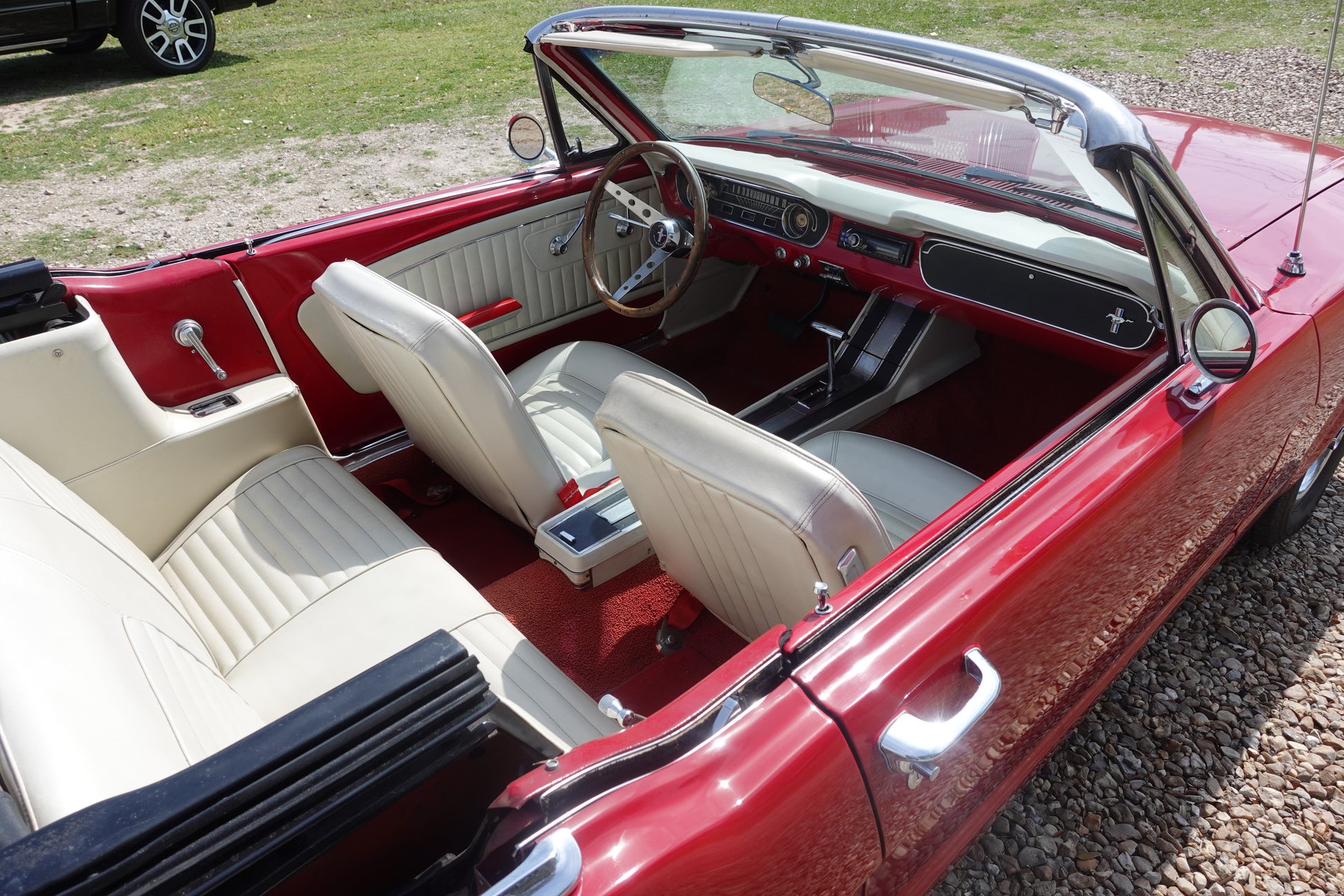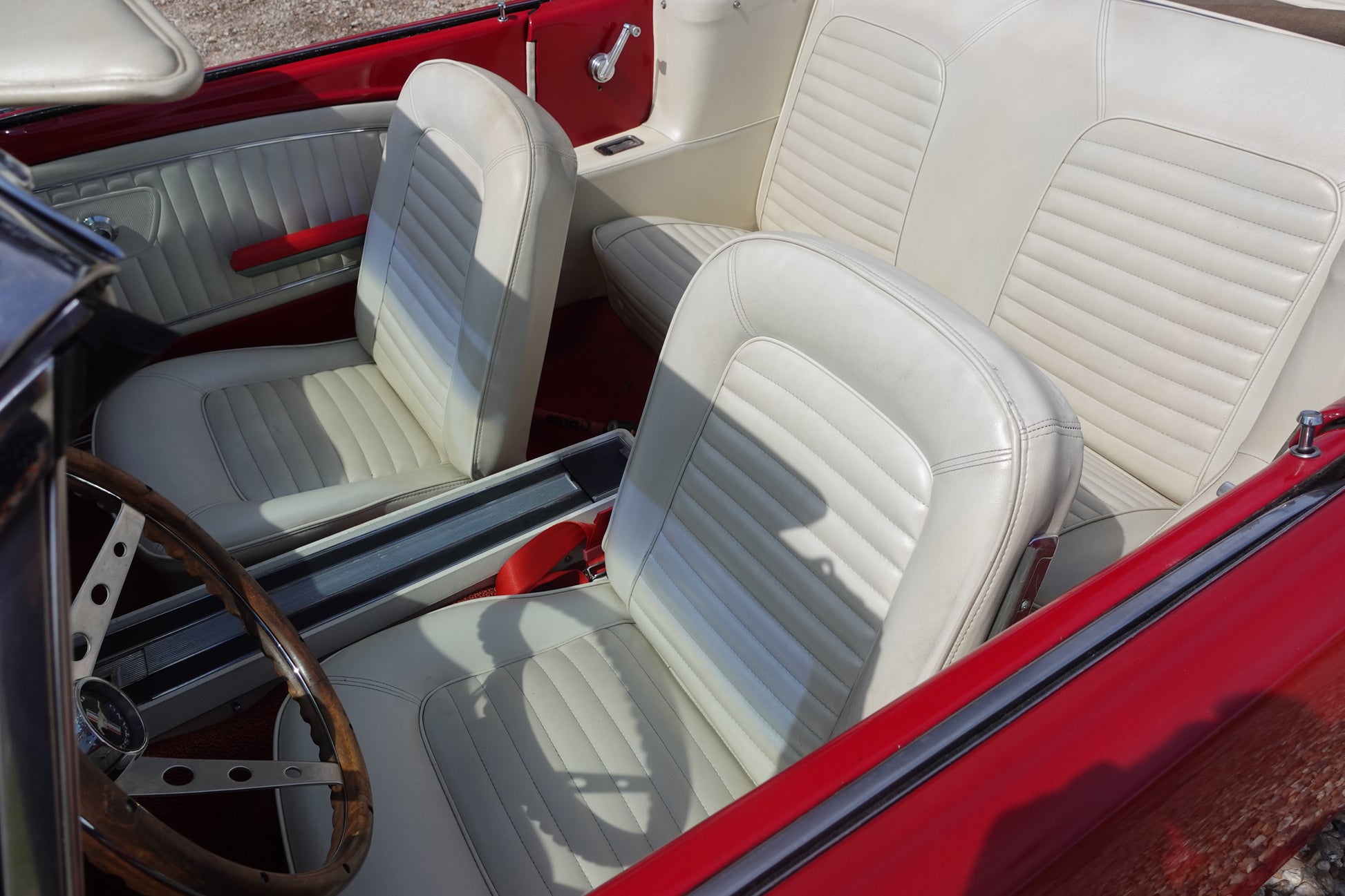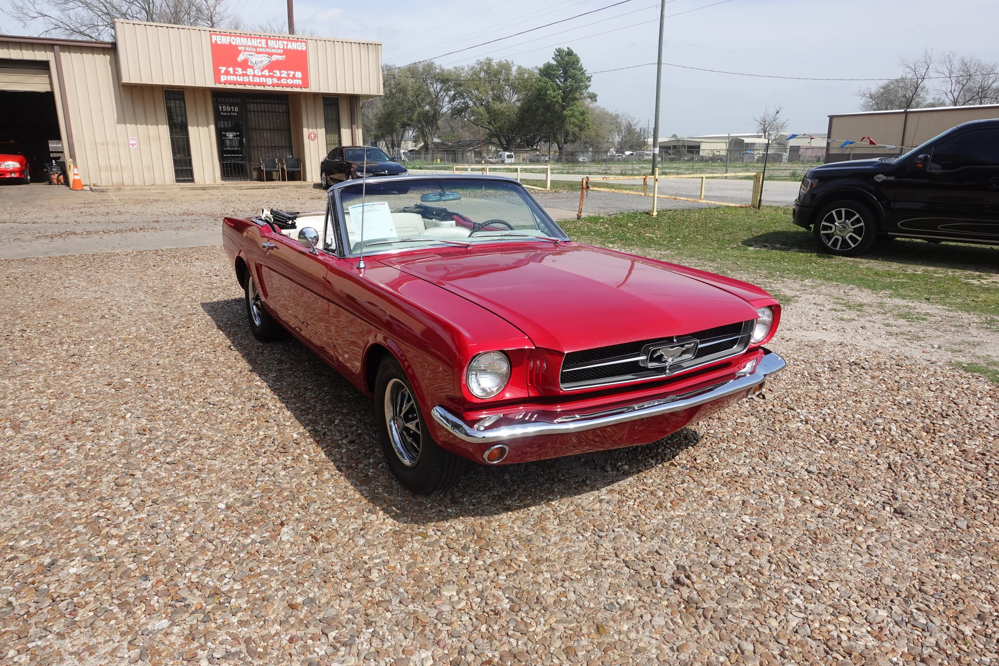 FRESHLY PAINTED RANGOON RED MUSTANG CONVERTIBLE WITH WHITE TOP POWER TOP