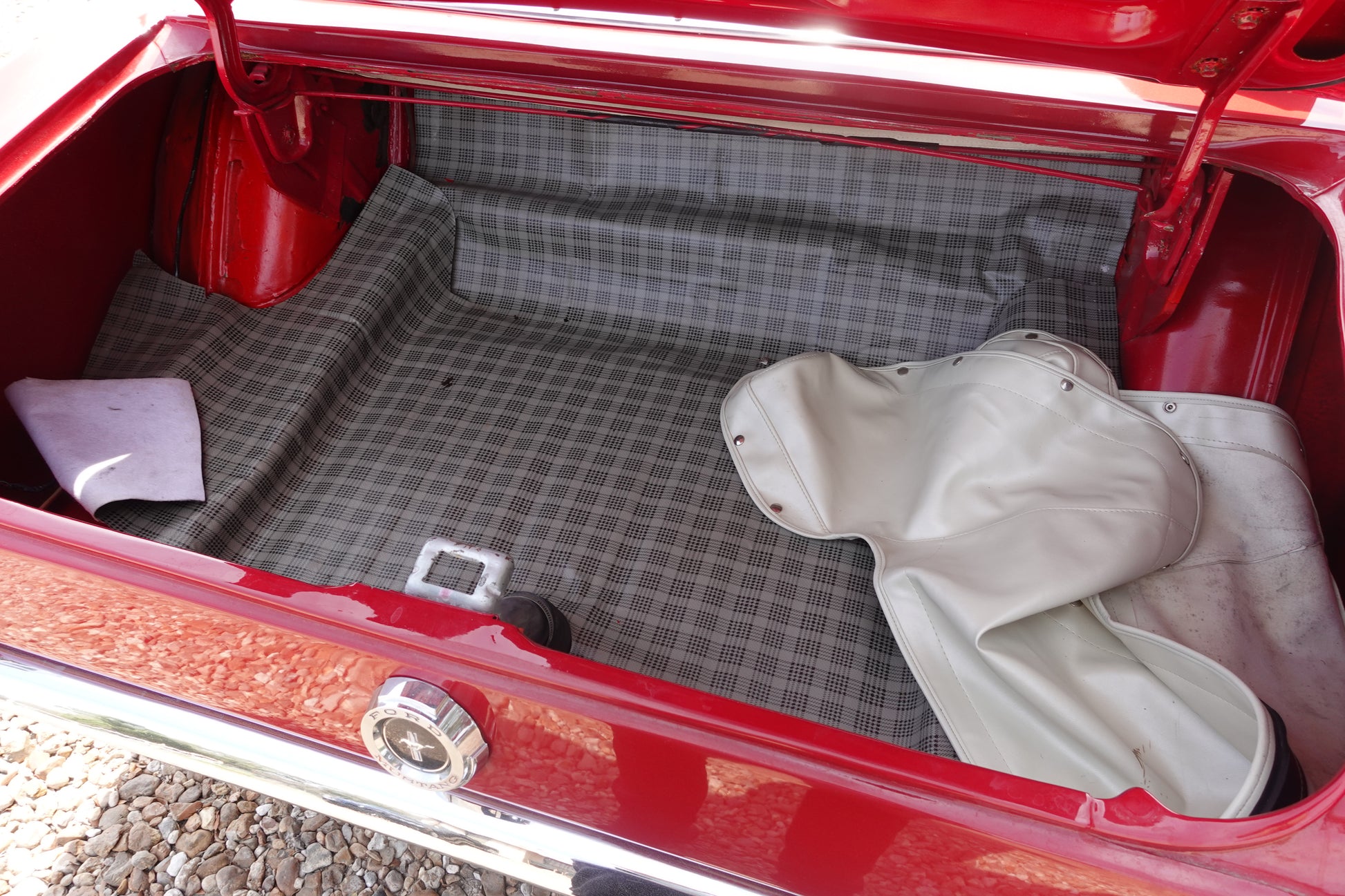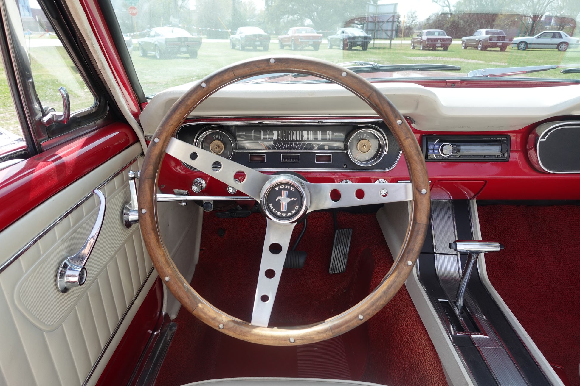 FORD MOTORSPORT AIR CLEANER NEW CHROME BUMPRES 195/75/14 REAR TIRES 205/70/14 FRONT TIRES CLASSIC STYLED STEEL WHEELS WITH RED PONY CENTER CAPS RED AND WHITE INTERIOR CENTER CONSOLE NEW RED CARPET WOOD STEERING WHEEL WITH MUSTANG TRI-BAR HORN NEW GAS TANK NEW FUEL SENDING UNIT ALPINE CDE-121 RADIO USB CD AM/FM MEDIA PLAYER IN DASH RECEIVER