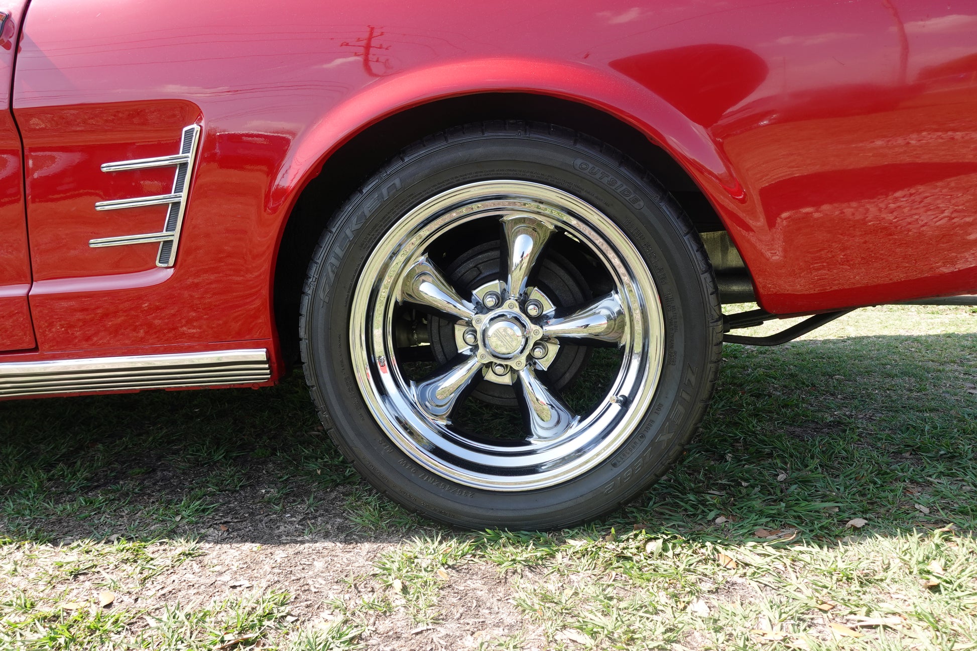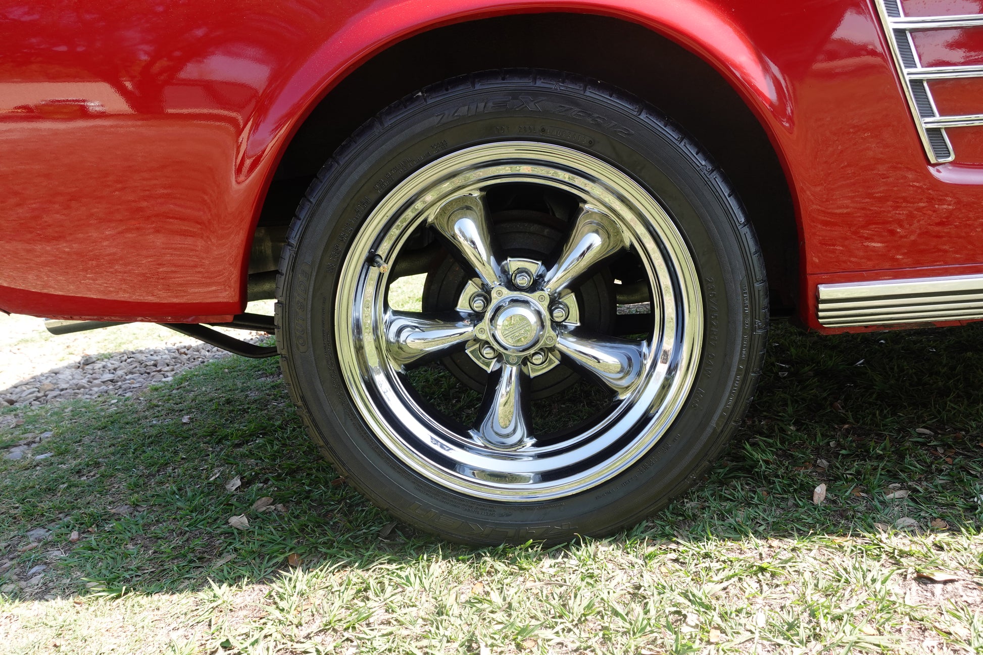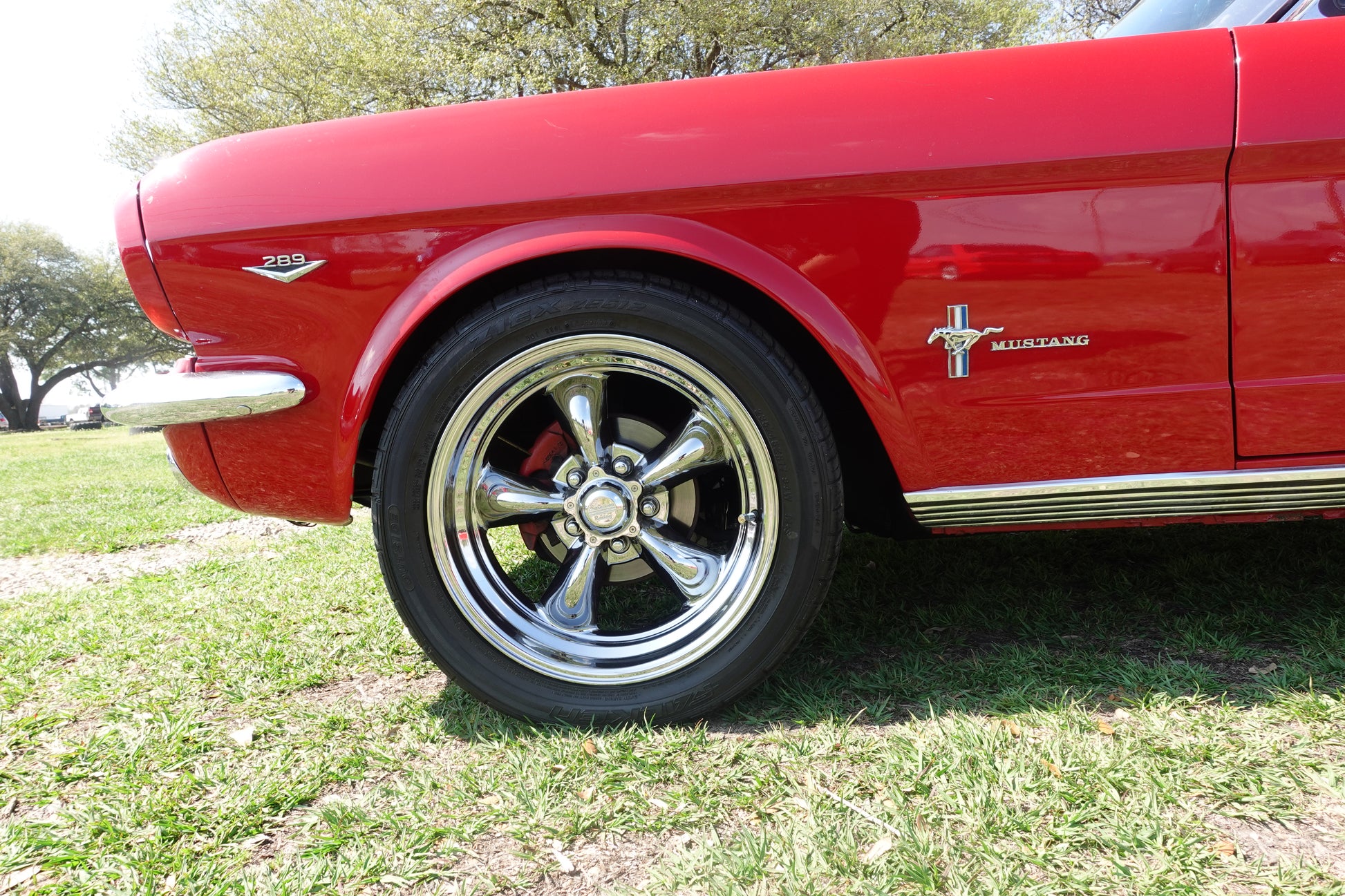 CLASSIC 17” AMERICAN RACING WHEELS WITH TRI-BAR MUSTANG VALVE COVERS TO MATCH CAR