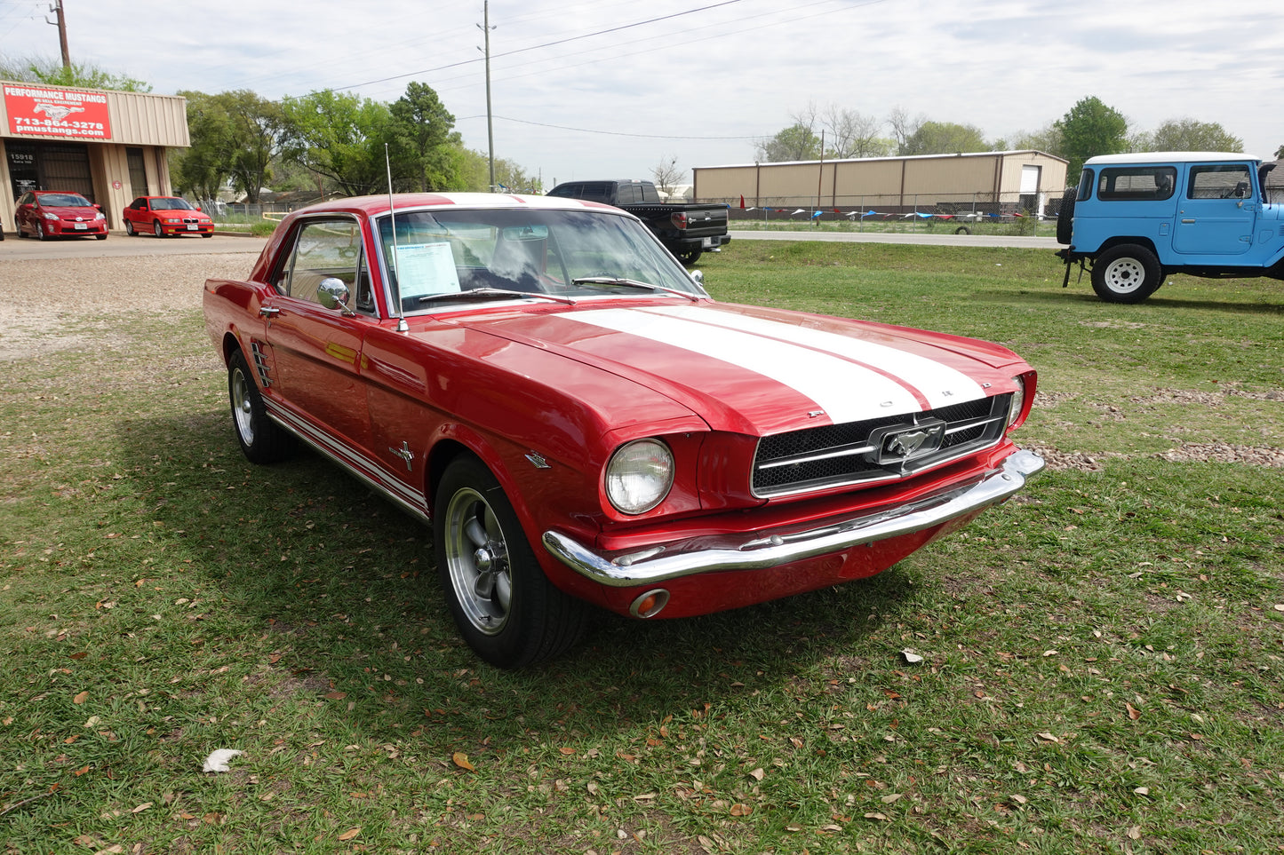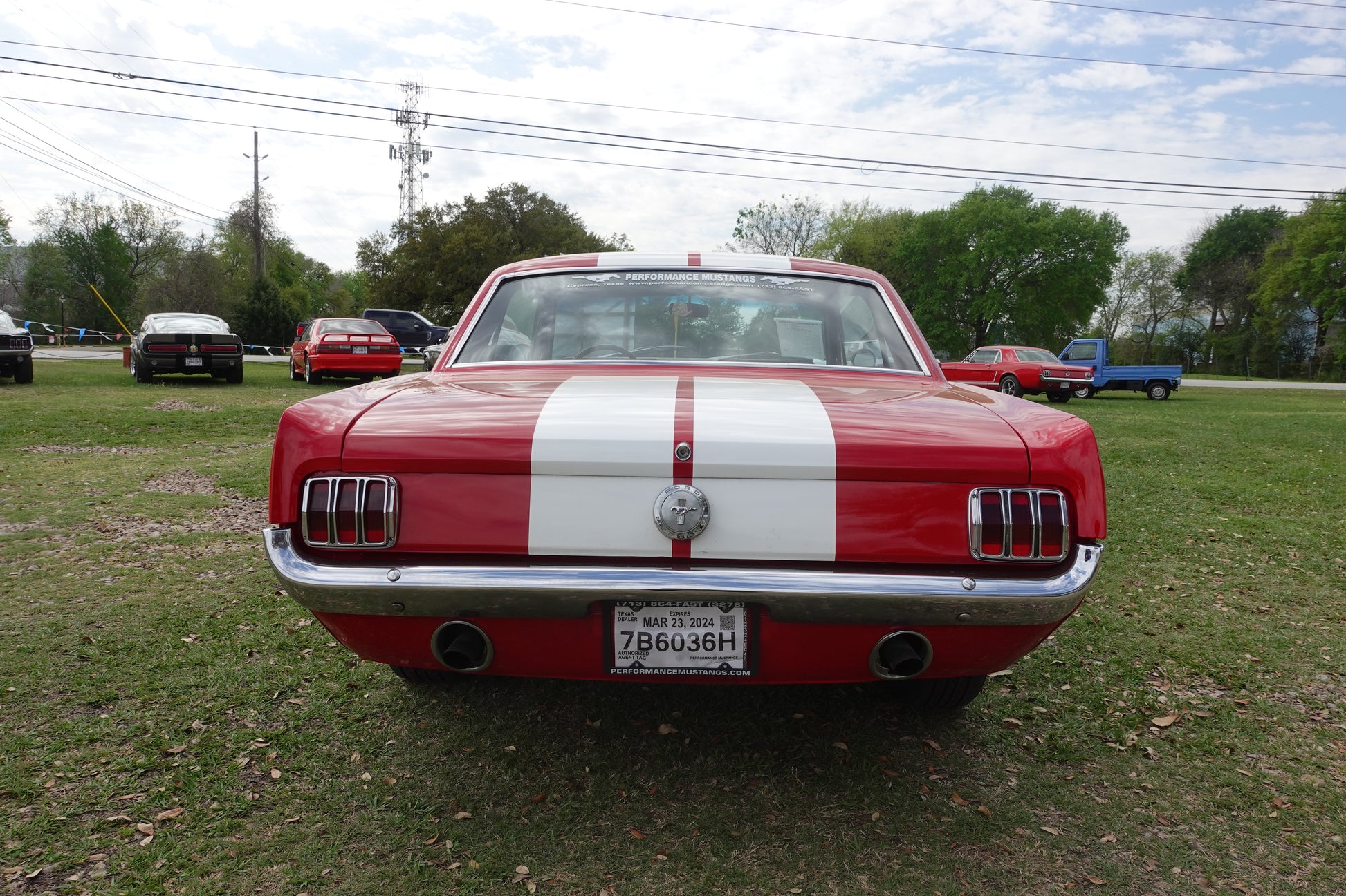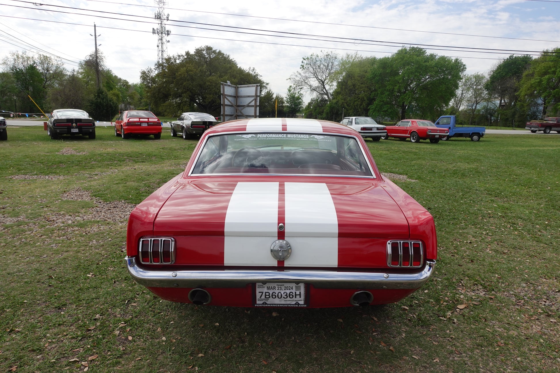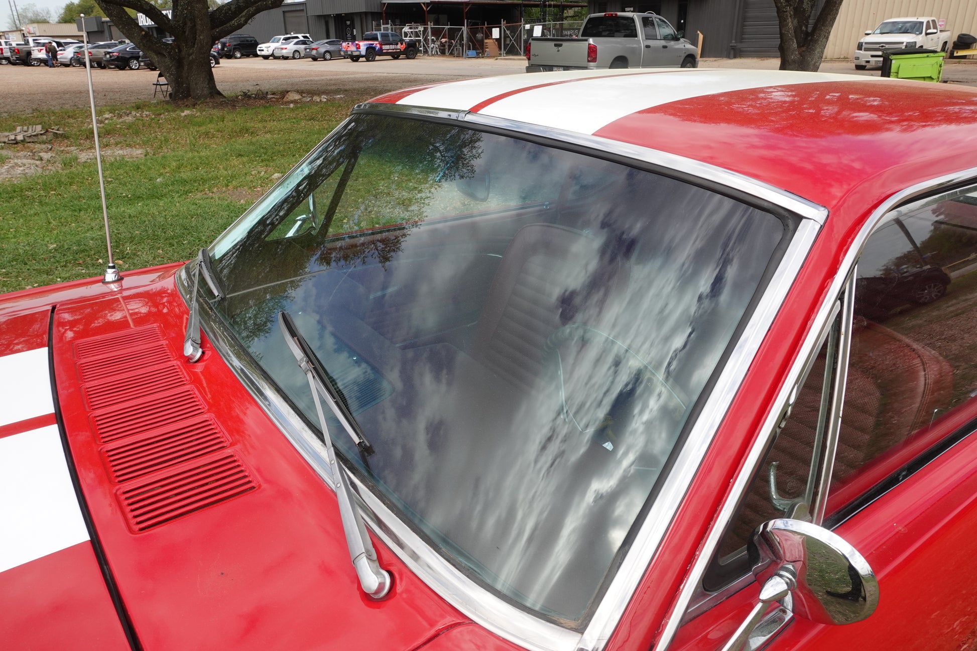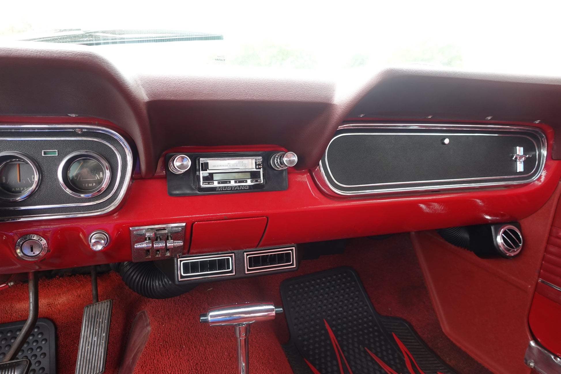 • BEAUTIFUL RUNNING 1966 MUSTANG COUPE NICELY PAINTED RED WITH WHITE SHELBY STRIPES
