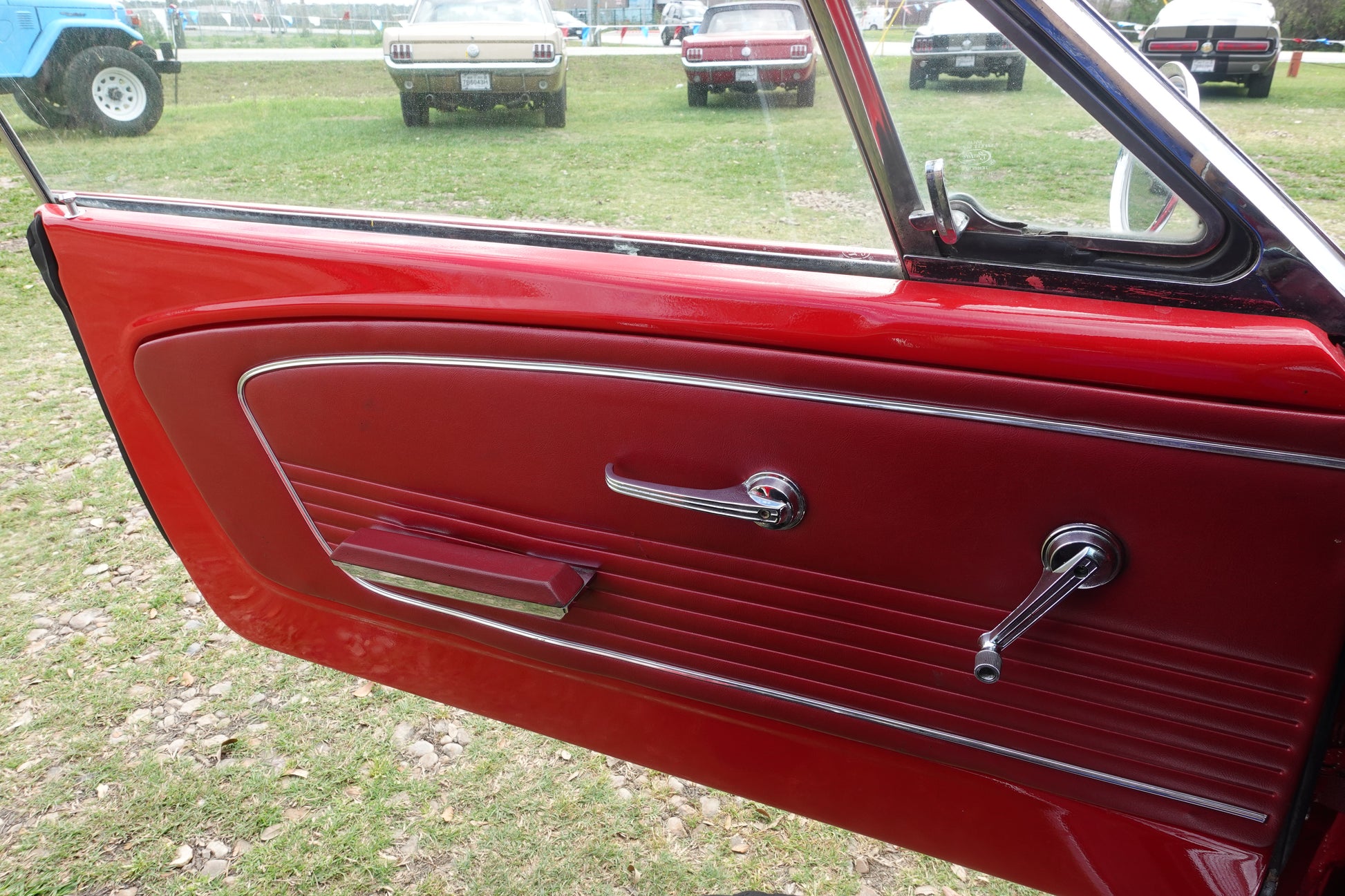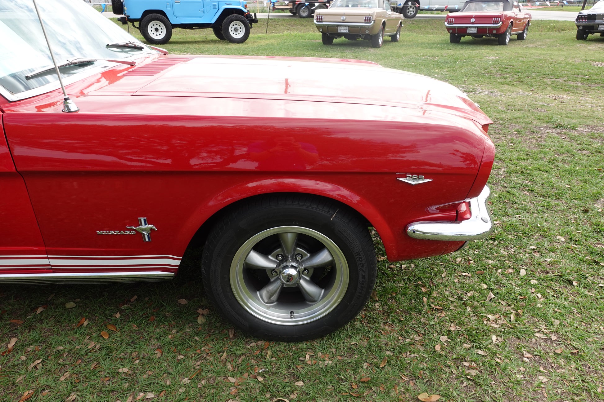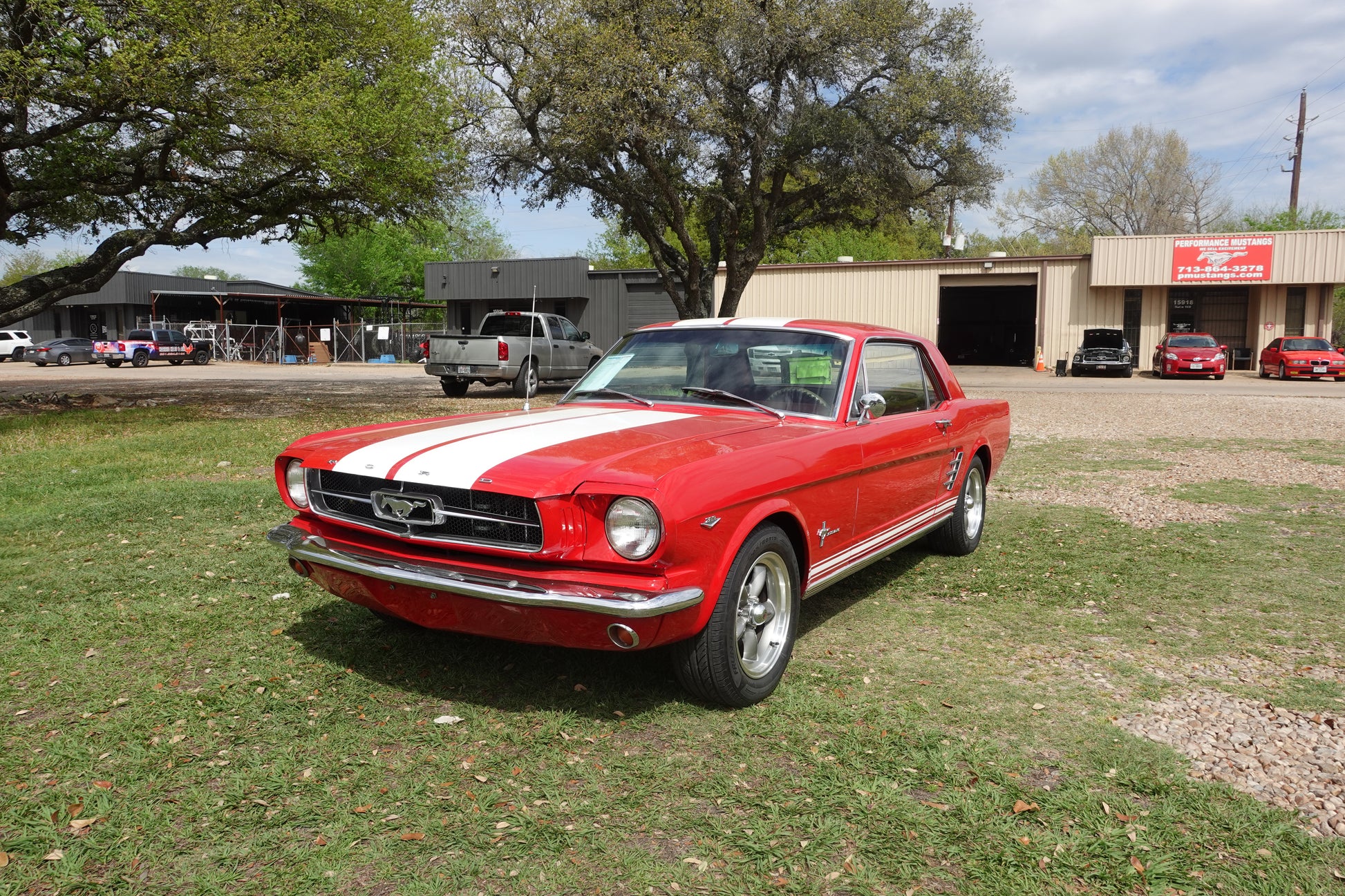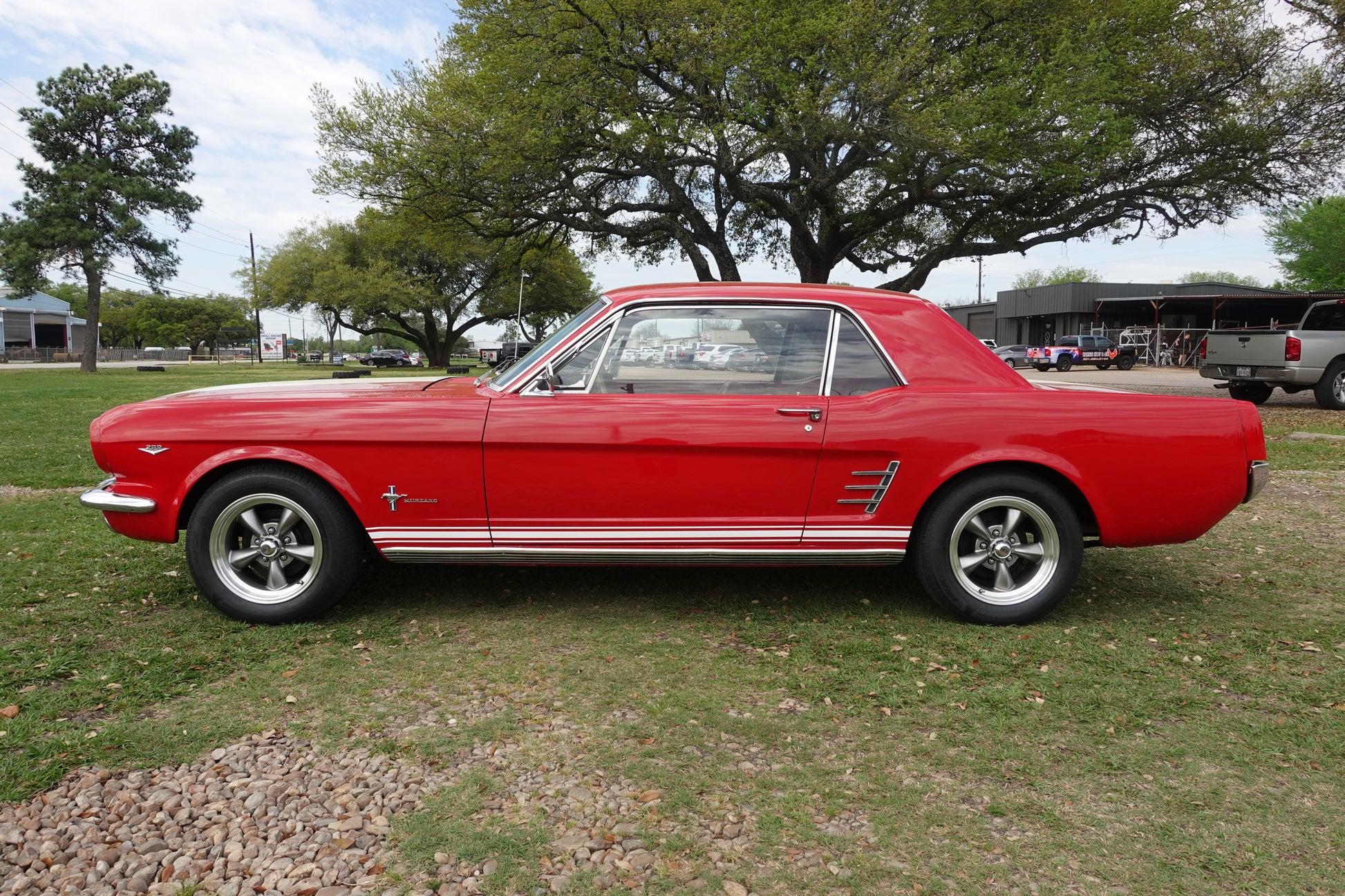 • BEAUTIFUL RUNNING 1966 MUSTANG COUPE NICELY PAINTED RED WITH WHITE SHELBY STRIPES