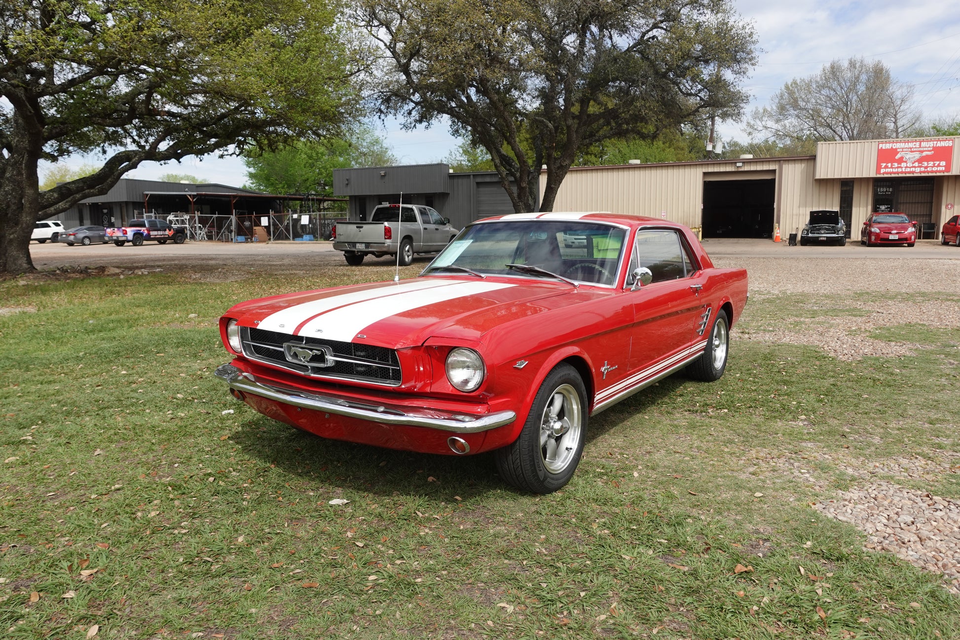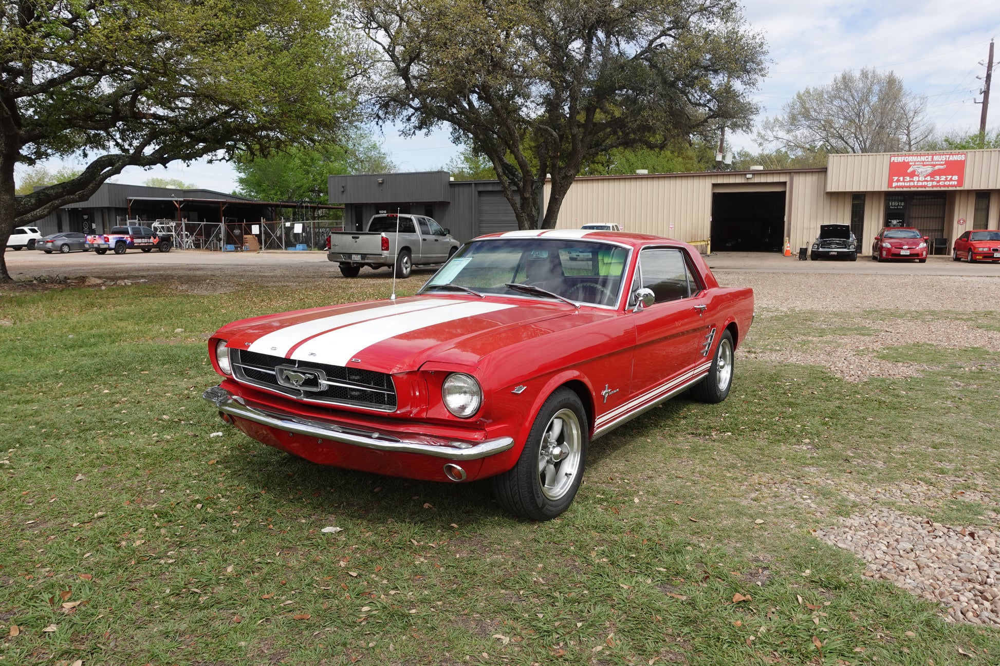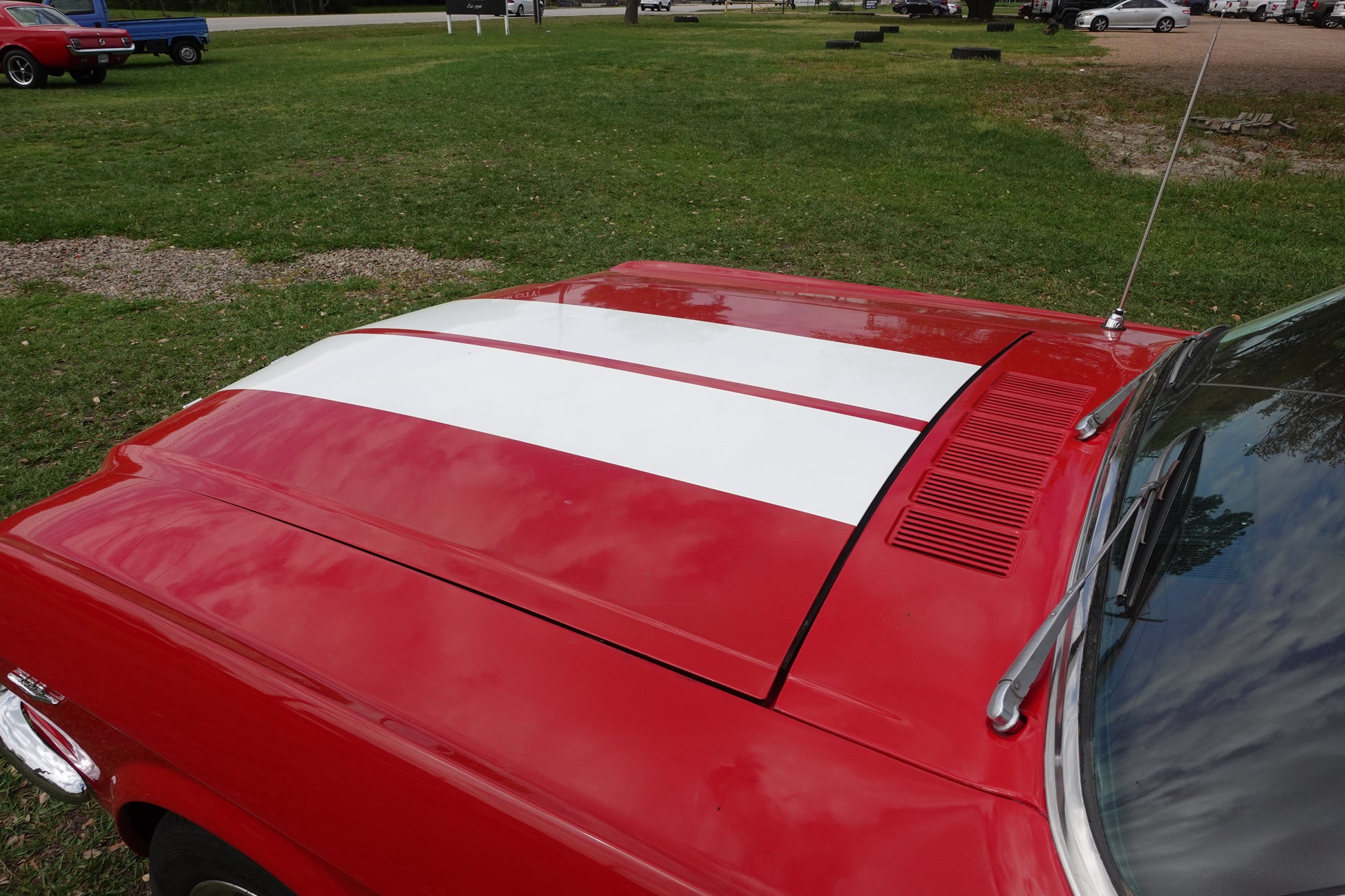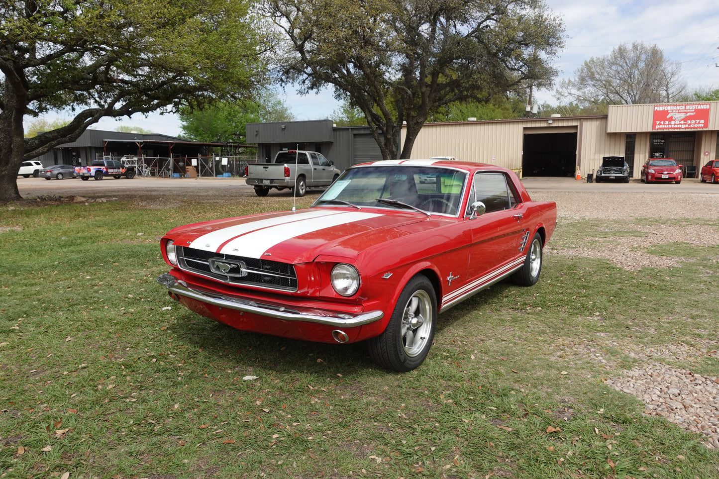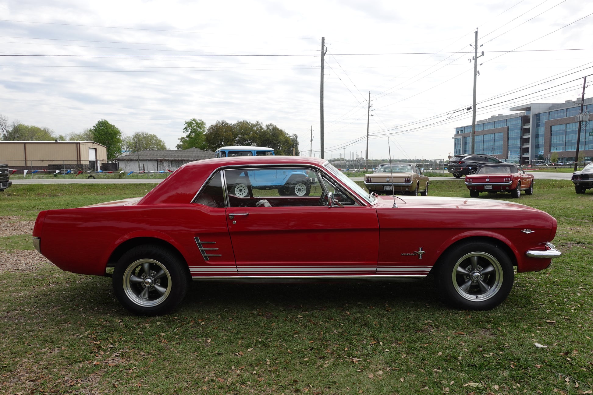 • BEAUTIFUL RUNNING 1966 MUSTANG COUPE NICELY PAINTED RED WITH WHITE SHELBY STRIPES