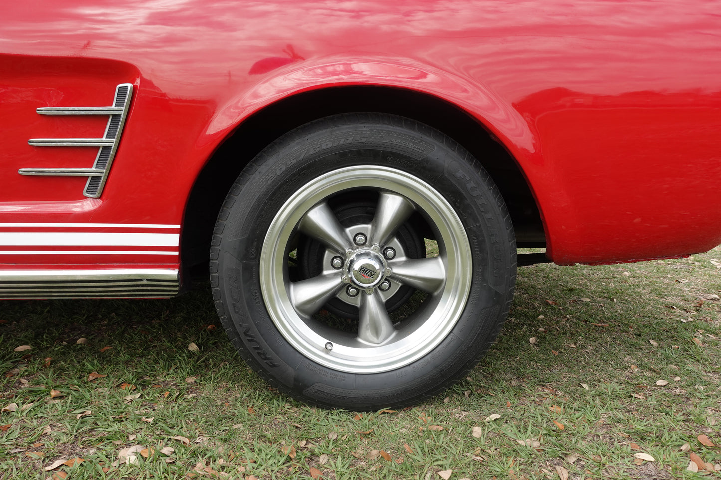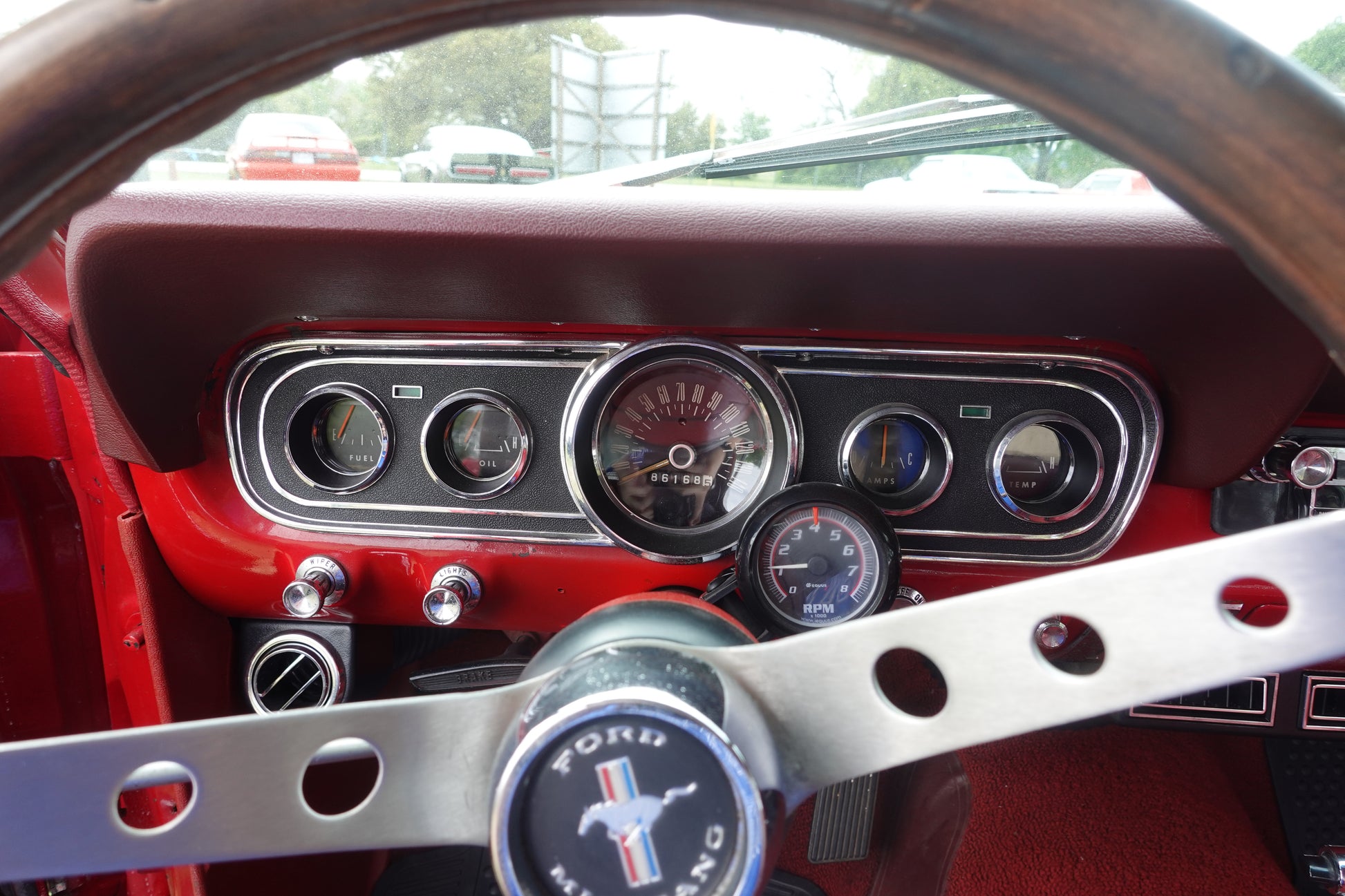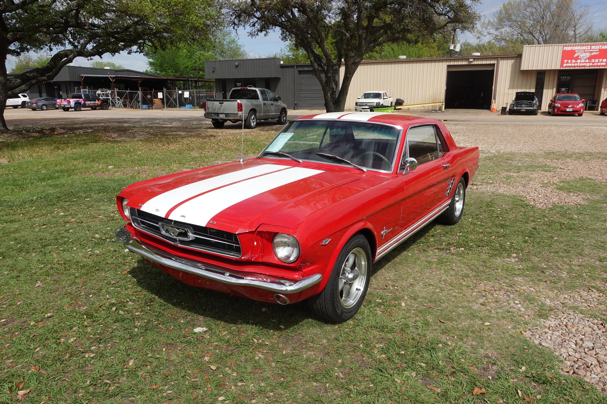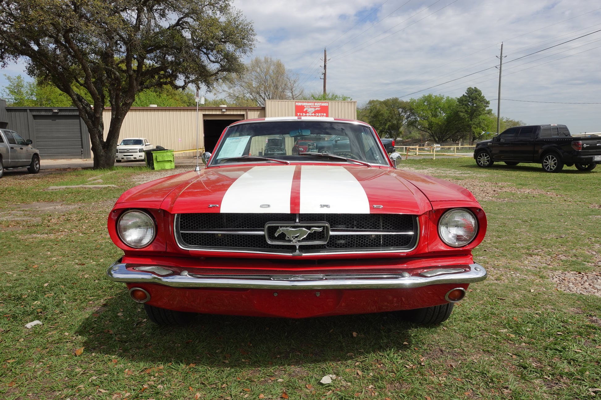 • BEAUTIFUL RUNNING 1966 MUSTANG COUPE NICELY PAINTED RED WITH WHITE SHELBY STRIPES