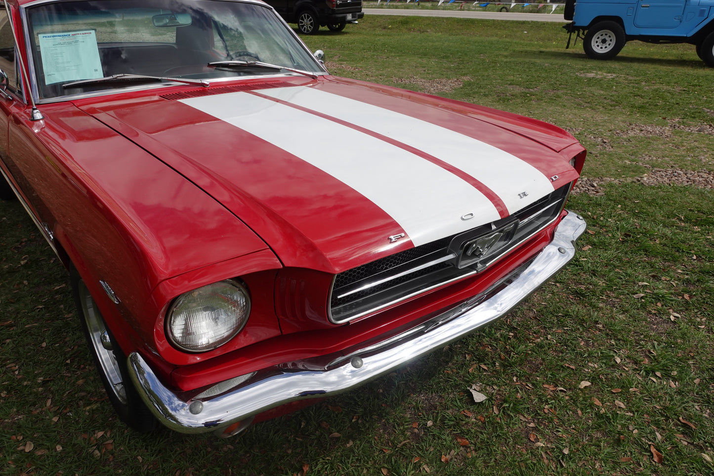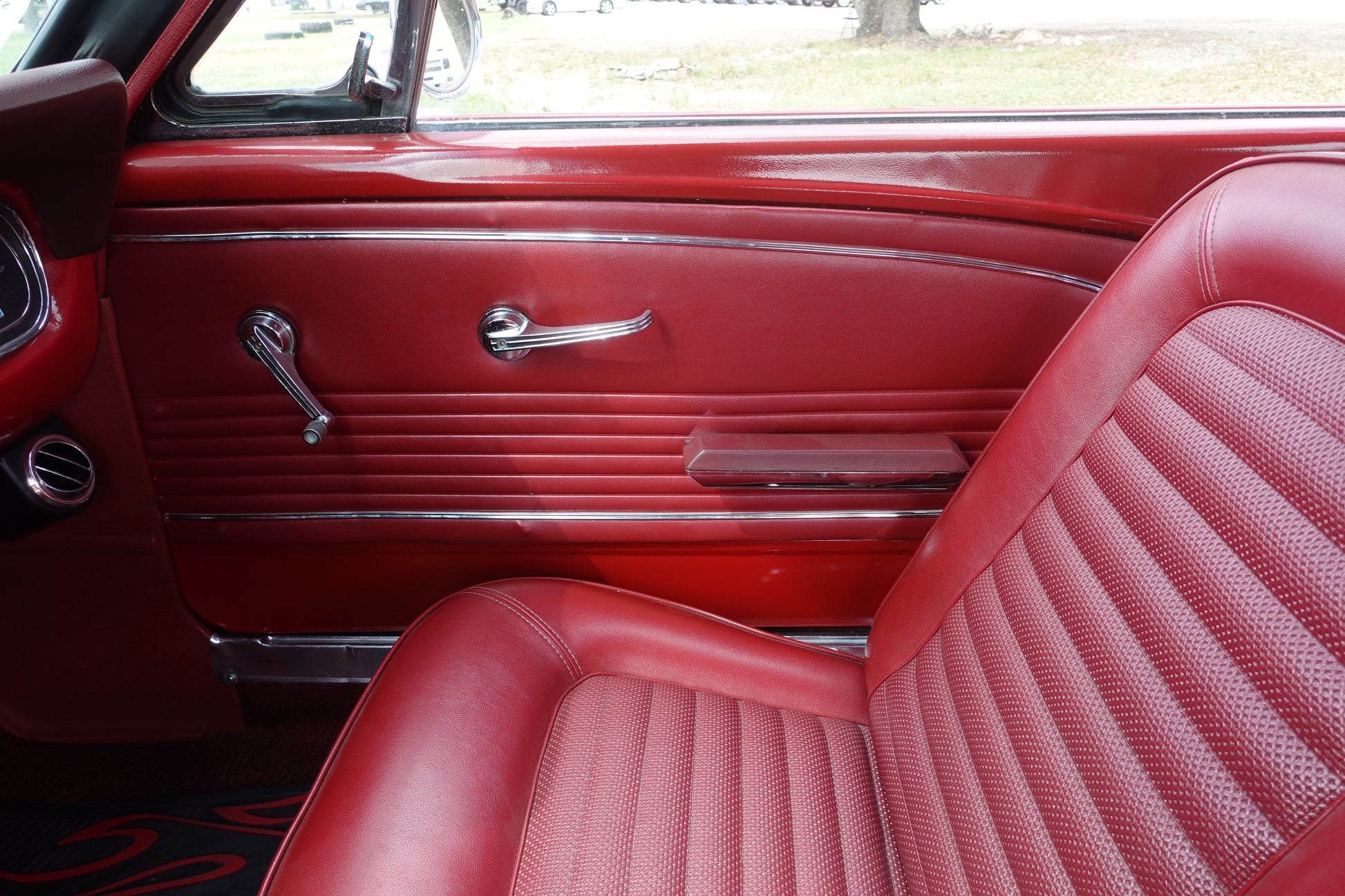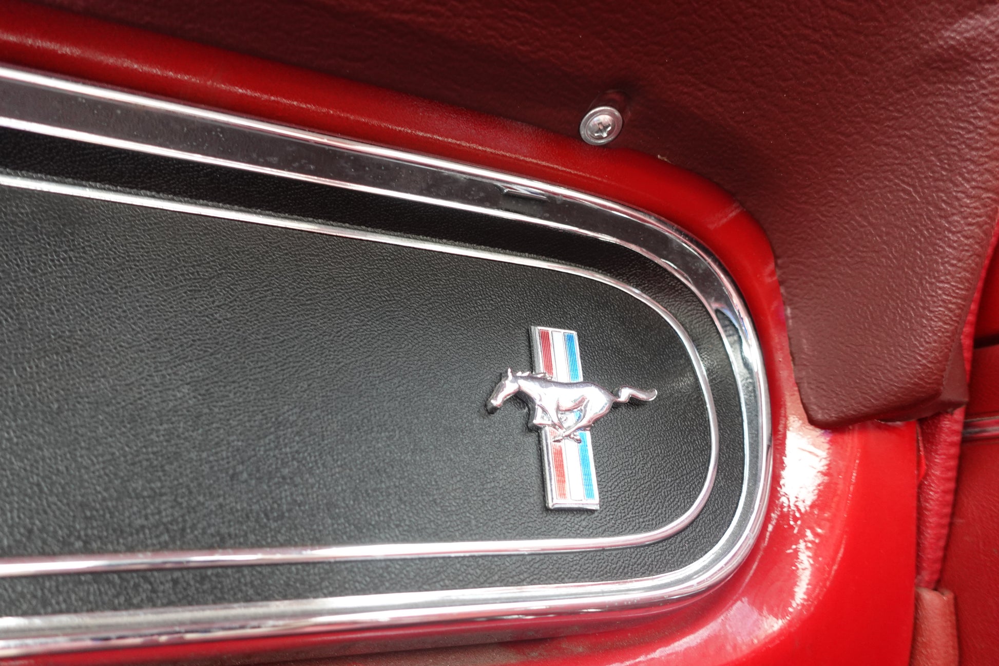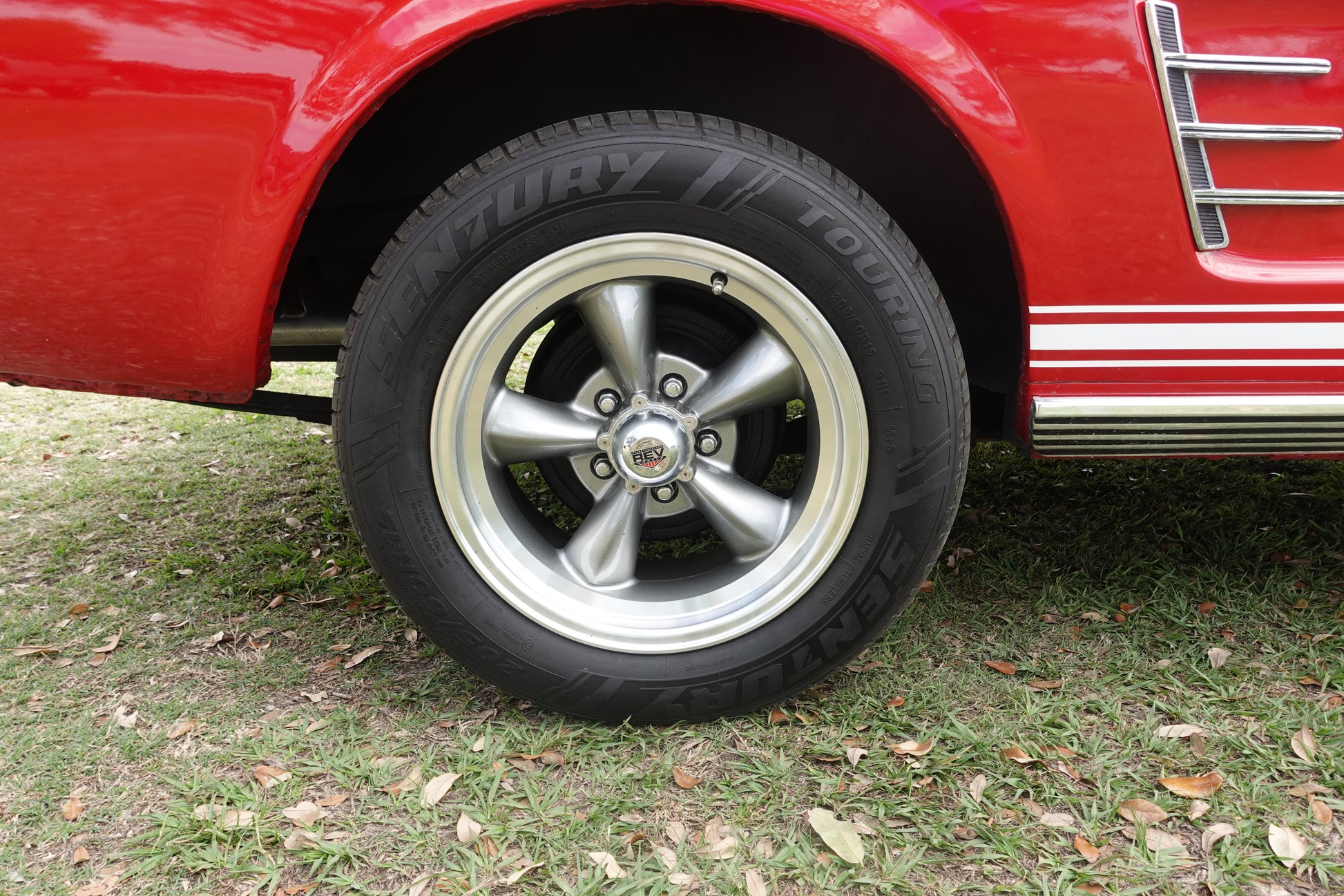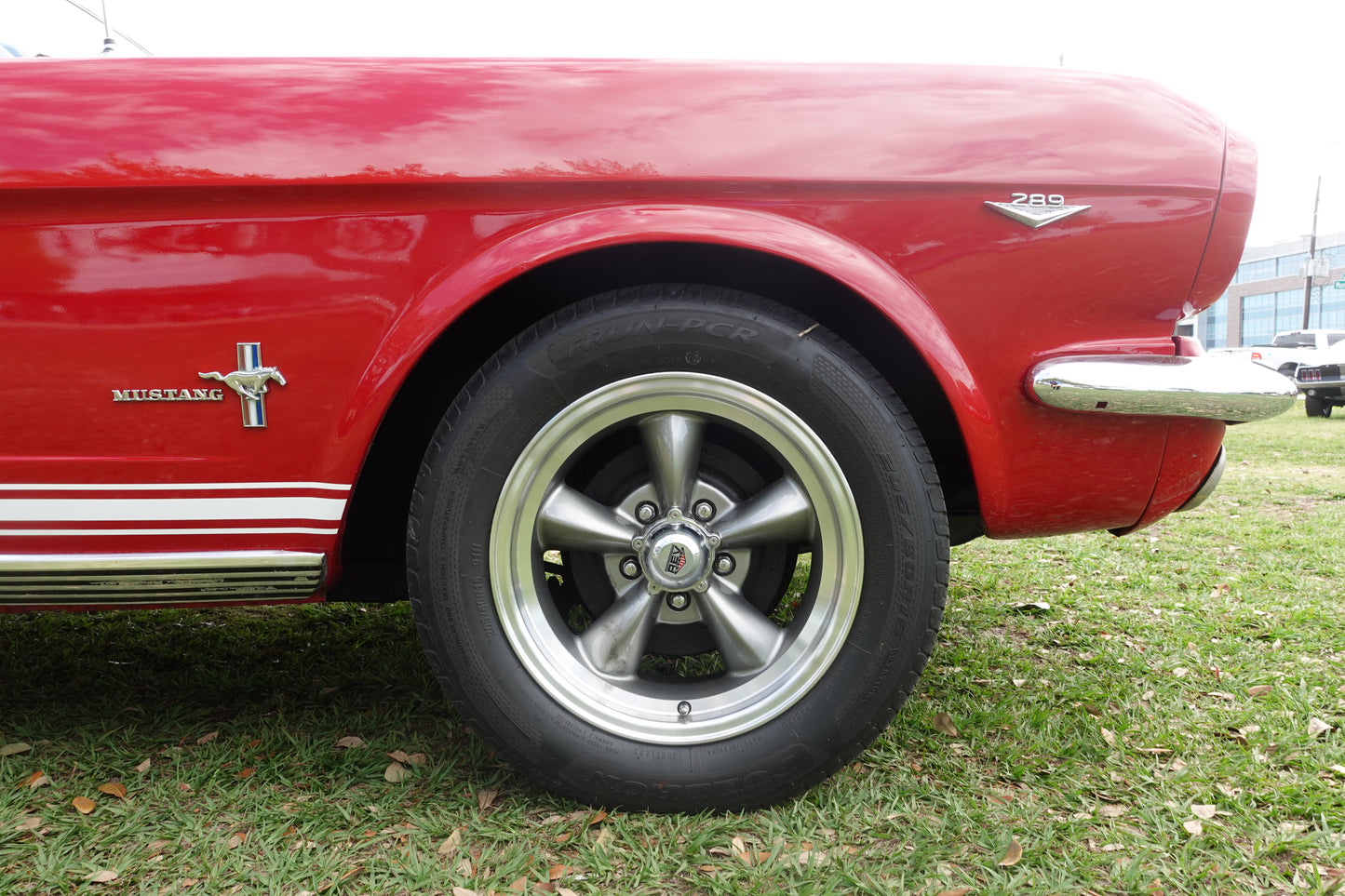 • BEAUTIFUL RUNNING 1966 MUSTANG COUPE NICELY PAINTED RED WITH WHITE SHELBY STRIPES