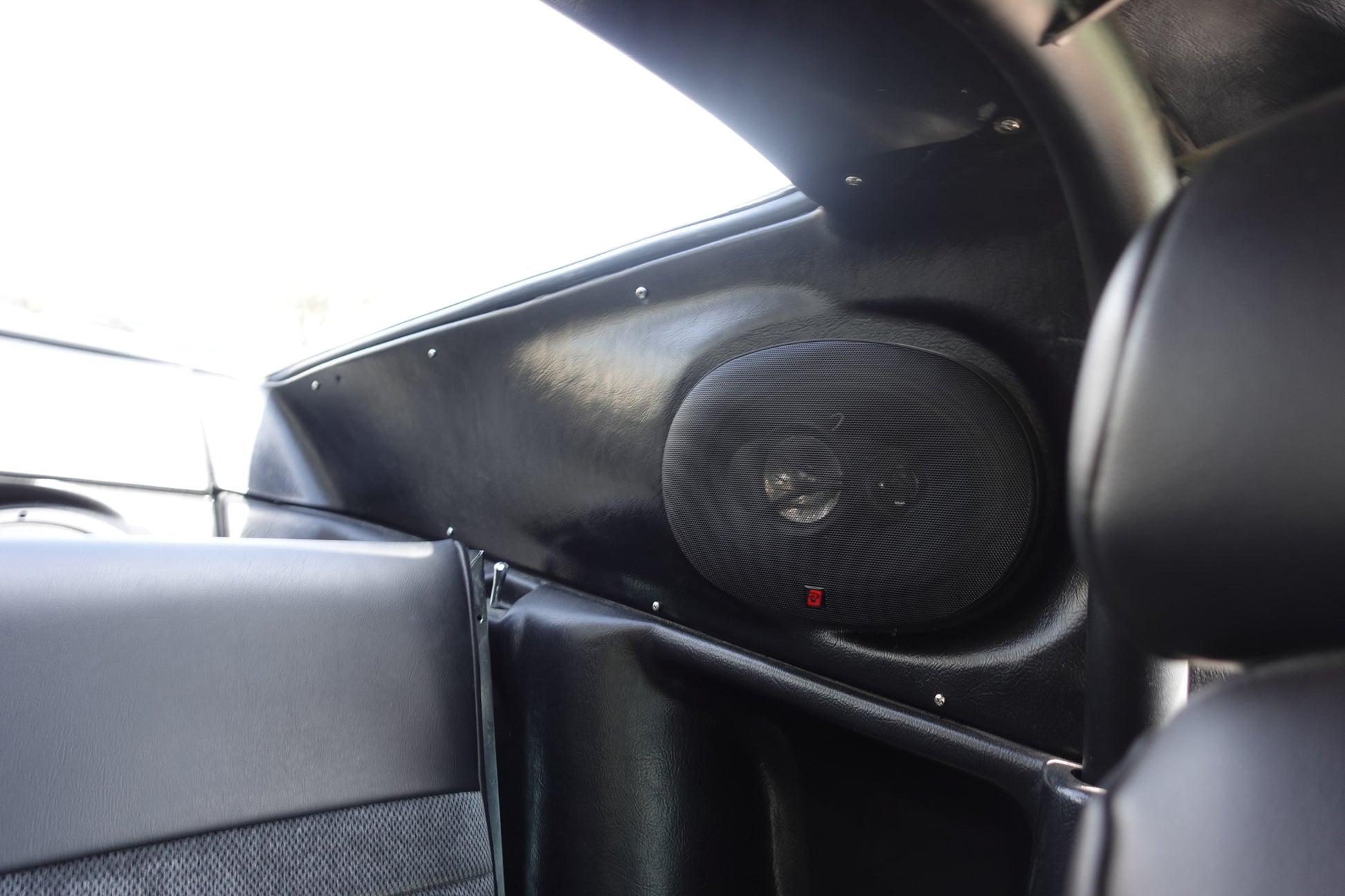 - REAR SAIL PANELS WITH 6x9 SPEAKERS, REAR TRAP DOOR WITH 12’ SUBS BACKED BY 1200W AMP