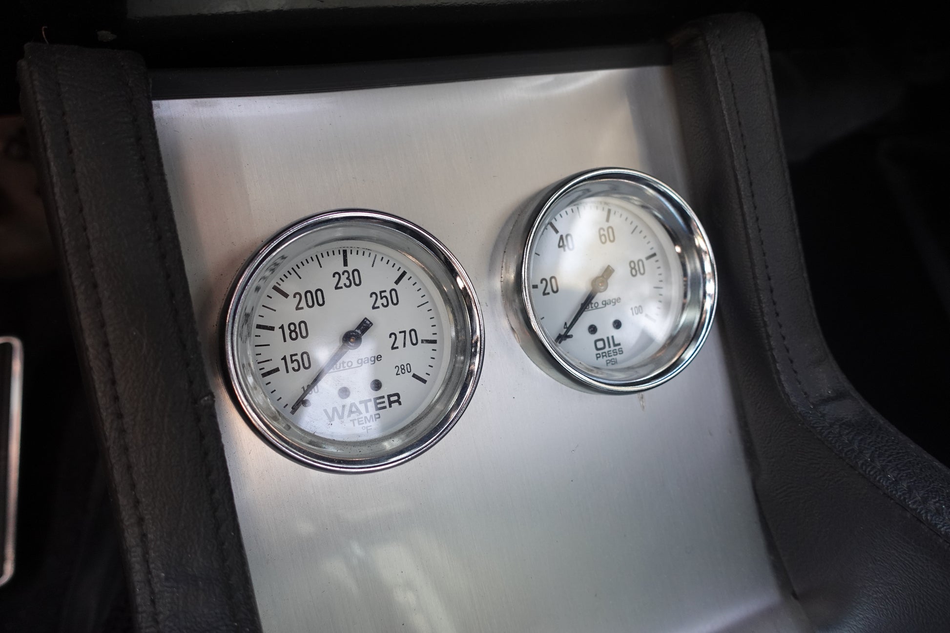 - COBRA STYLE CENTER CONSOLE WITH TEMP AND OIL PRESSURE GAUGE STAINLESS INSERT