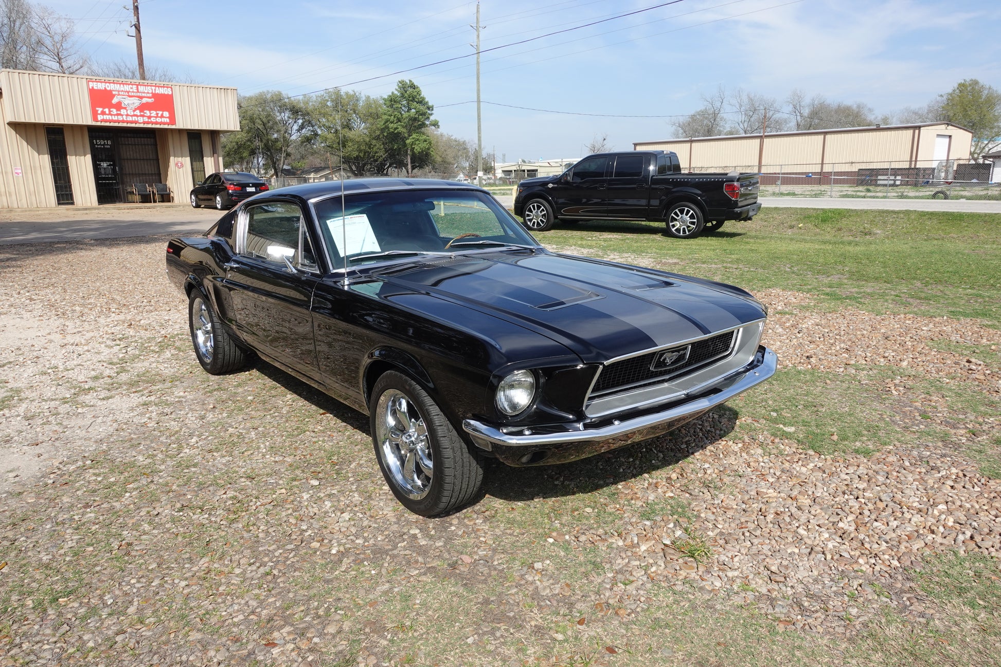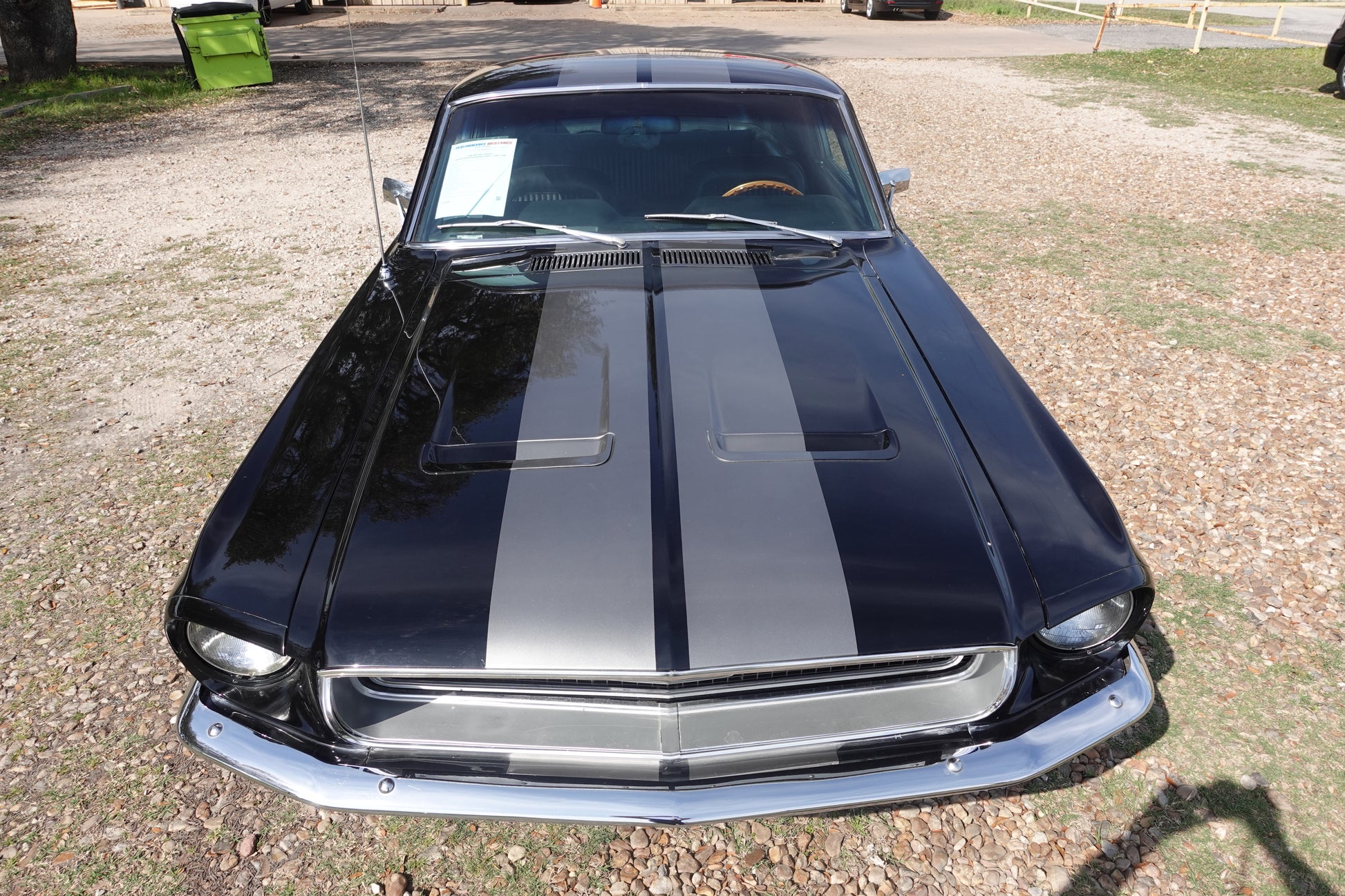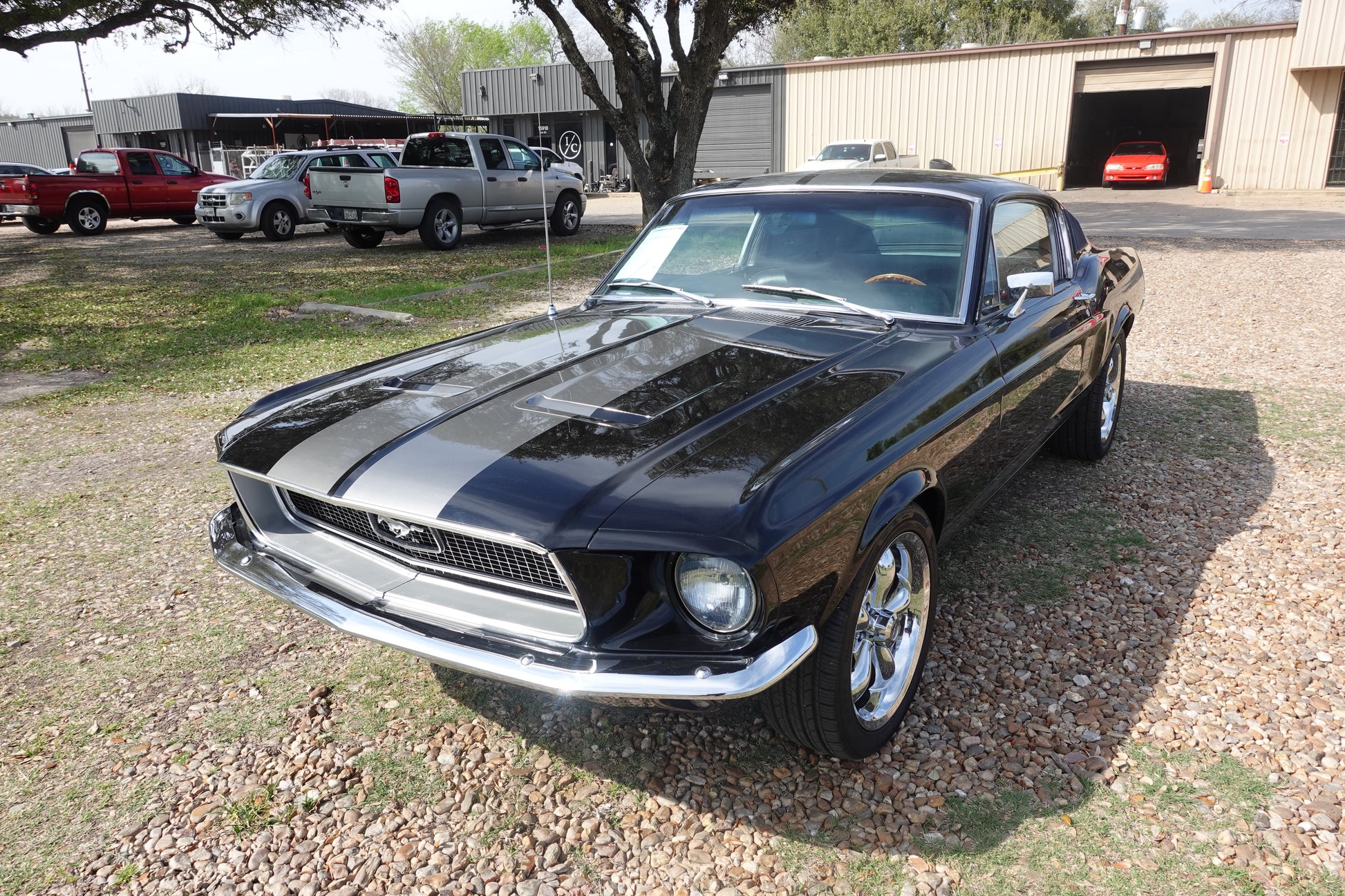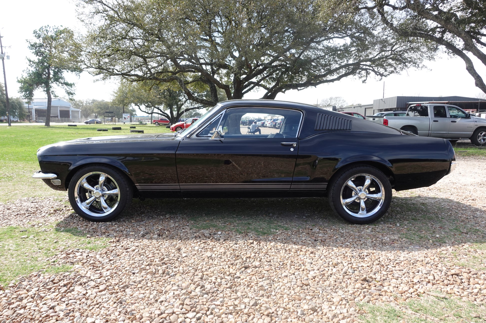 - 1968 MUSTANG FASTBACK PAINTED IN RAVEN BLACK WITH PEPPER GRAY STRIPES