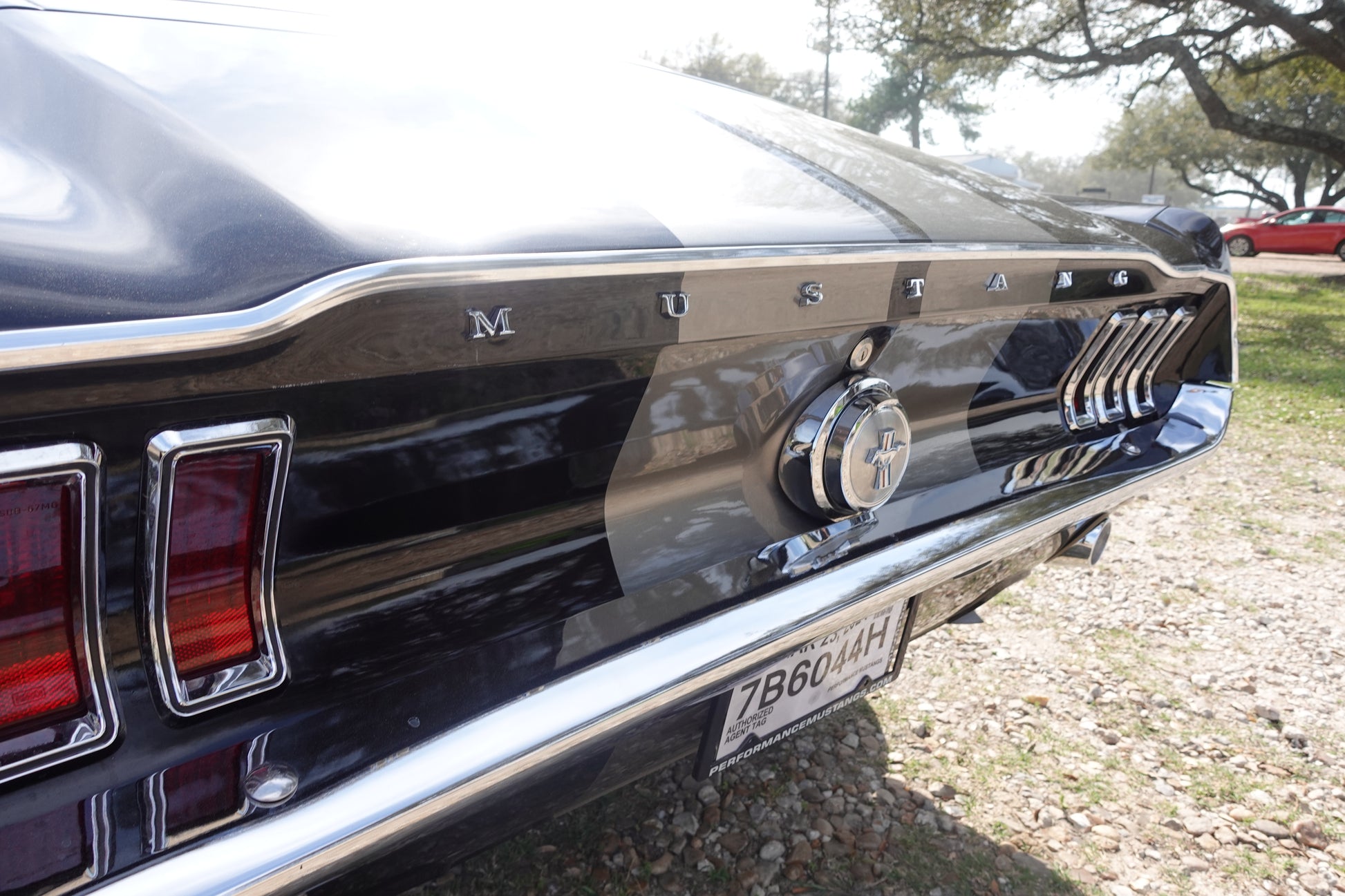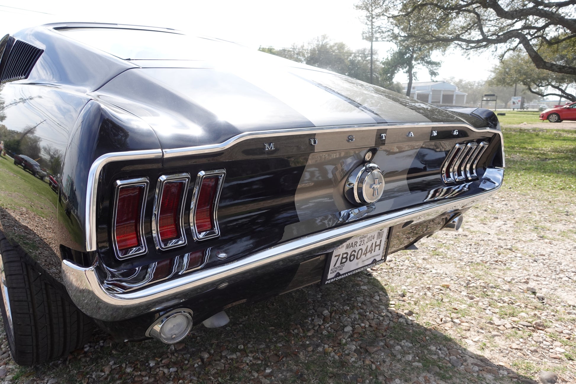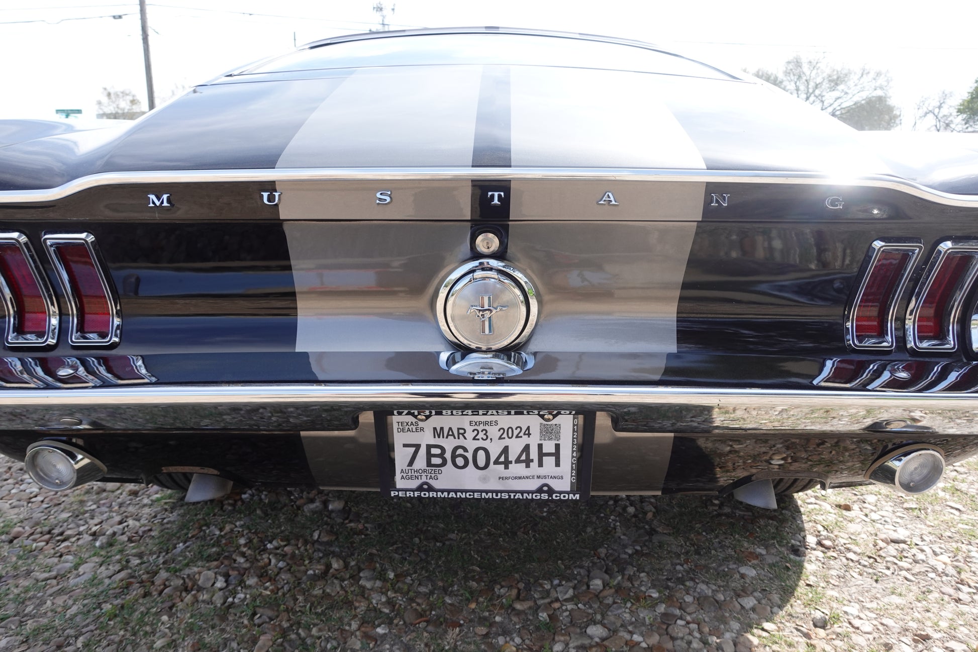 - 1968 MUSTANG FASTBACK PAINTED IN RAVEN BLACK WITH PEPPER GRAY STRIPES