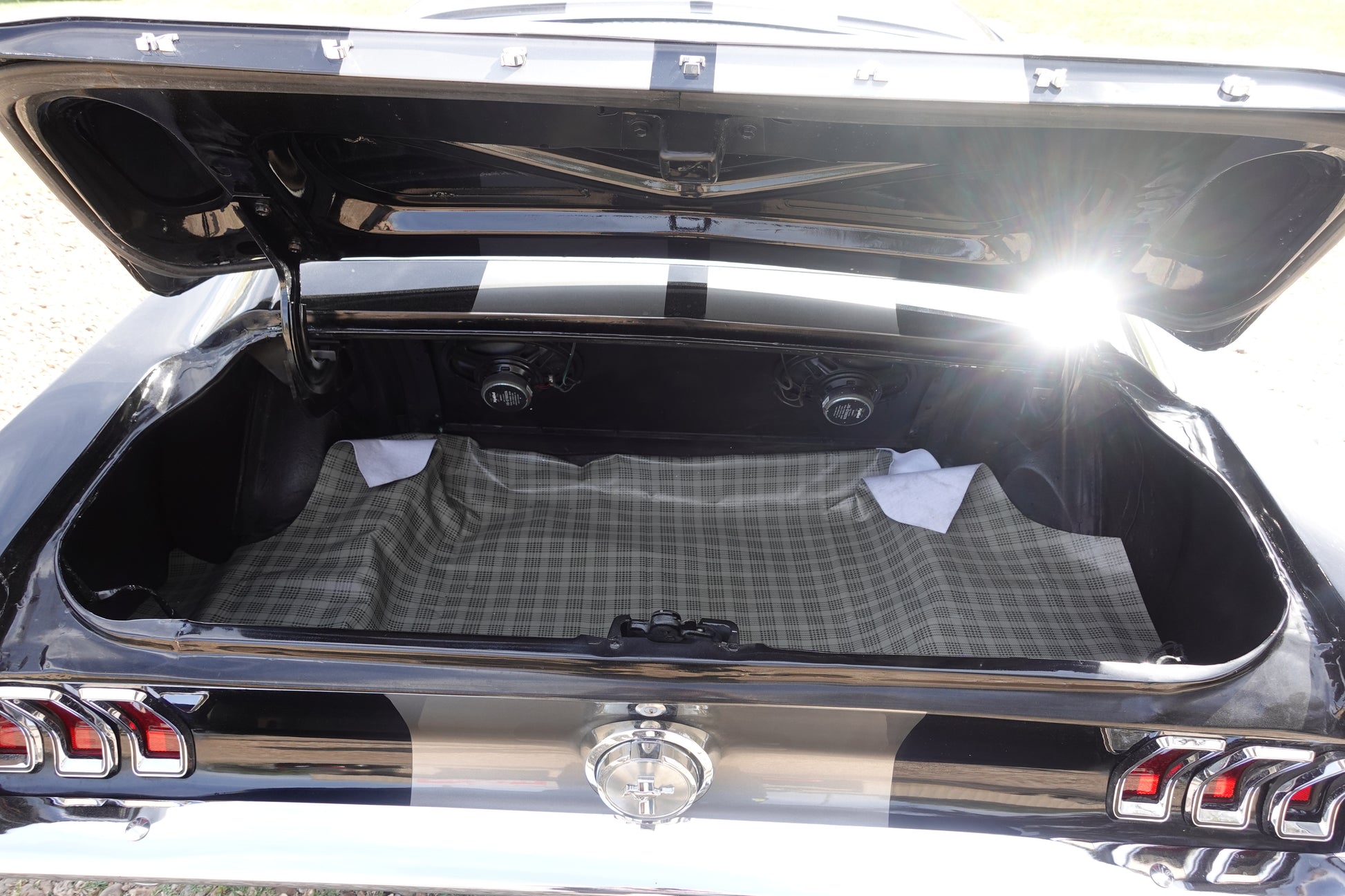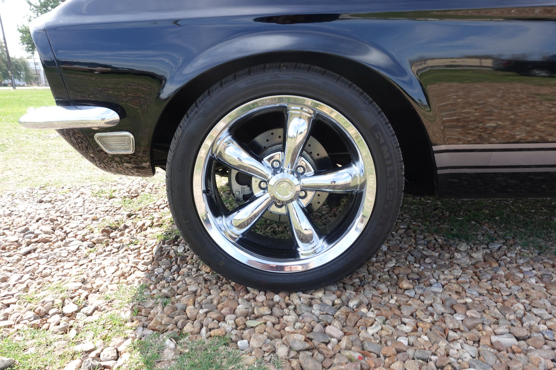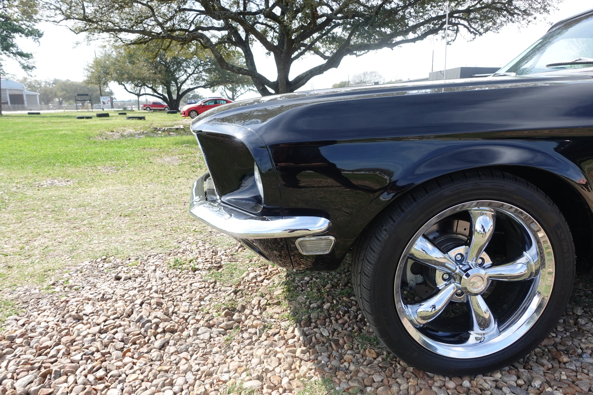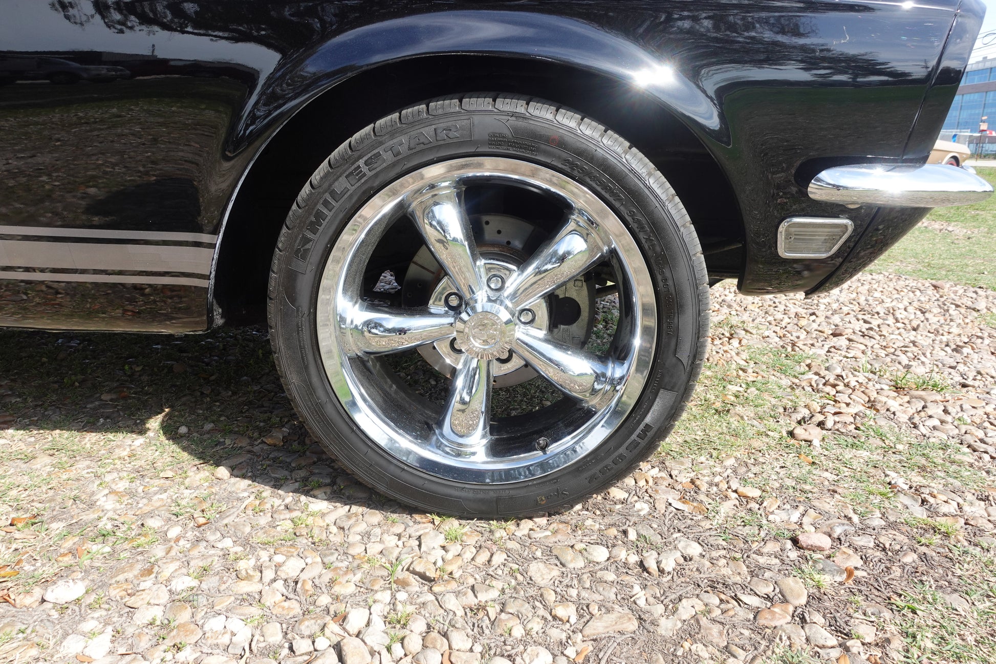 - 1968 MUSTANG FASTBACK PAINTED IN RAVEN BLACK WITH PEPPER GRAY STRIPES